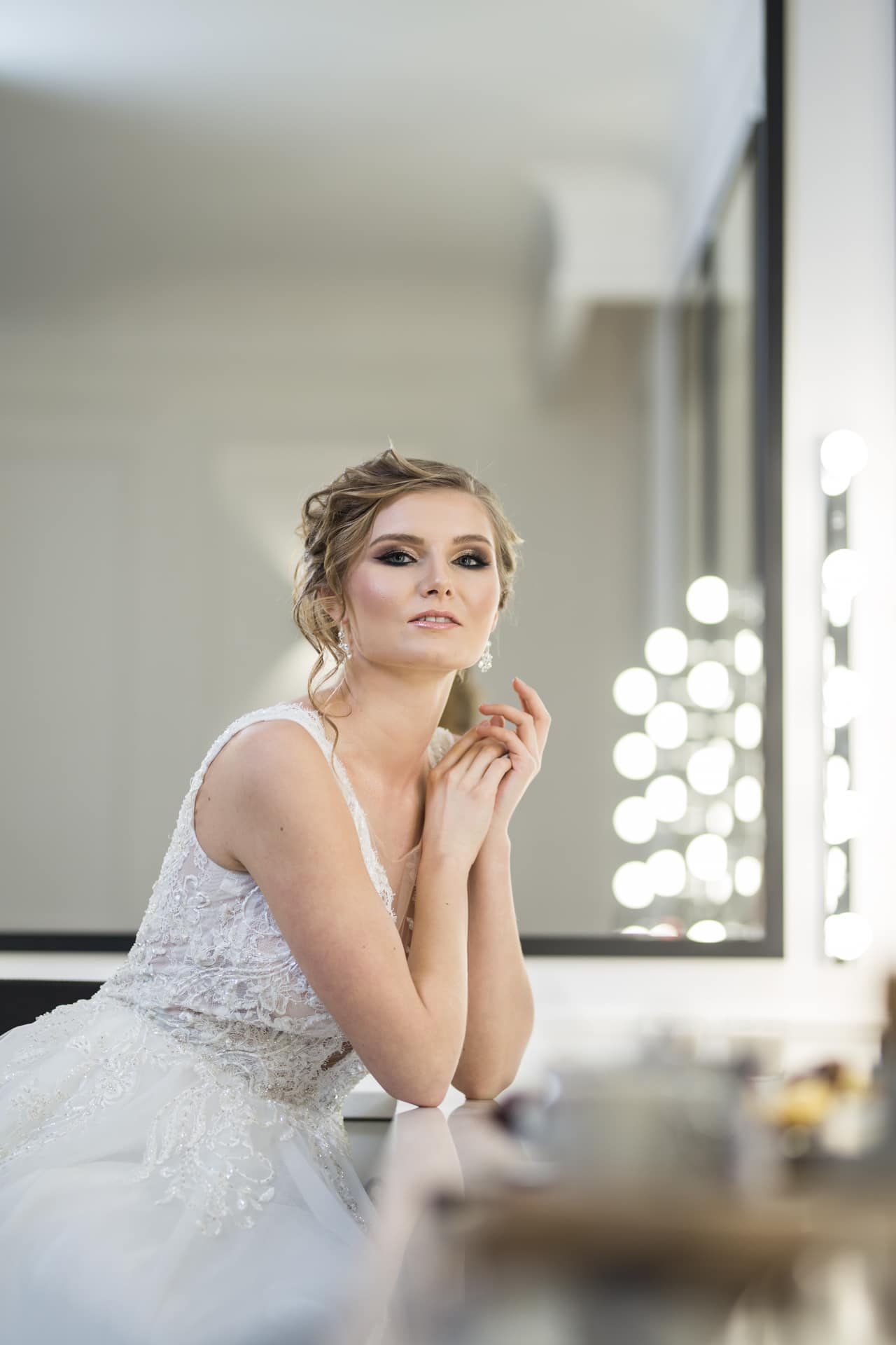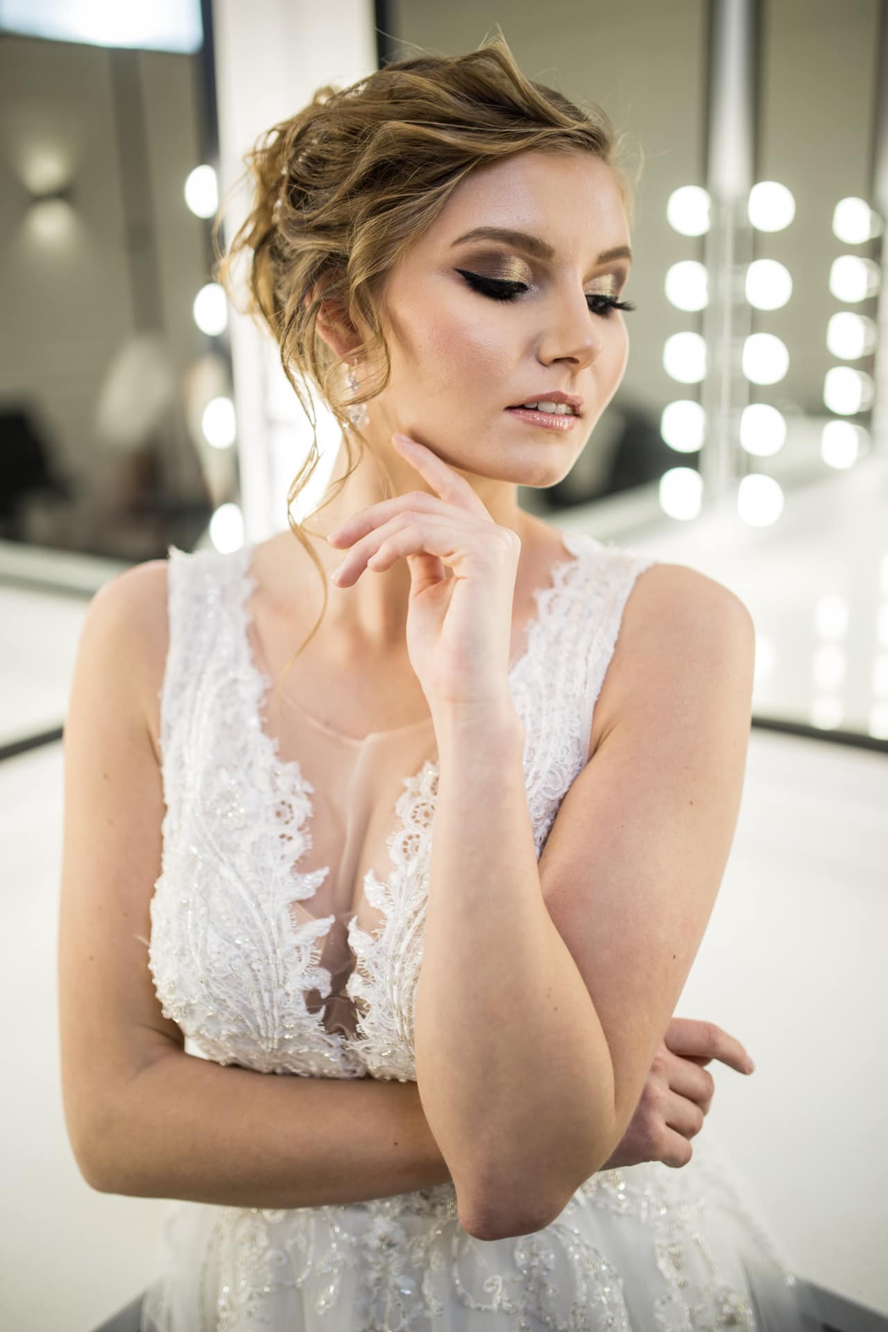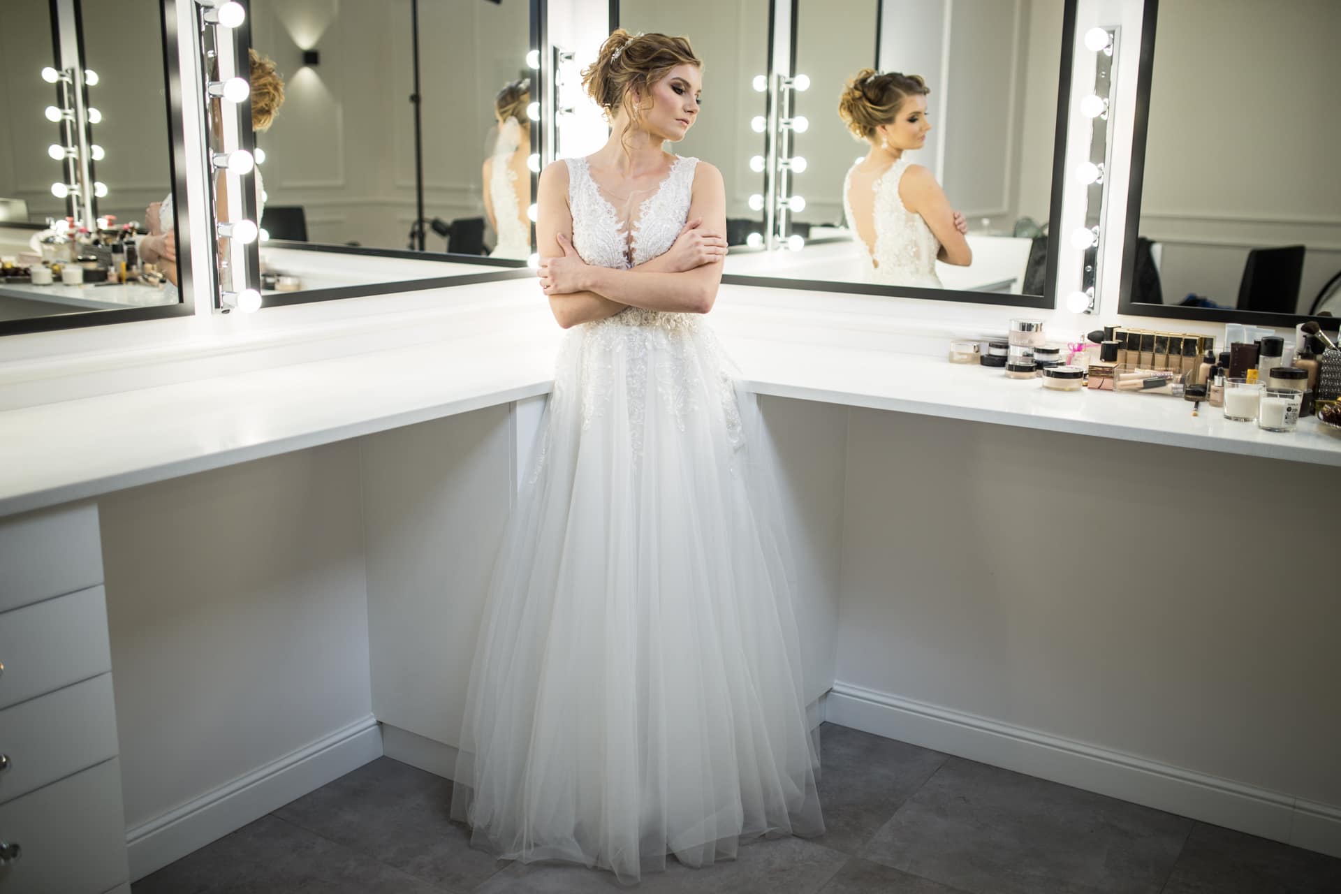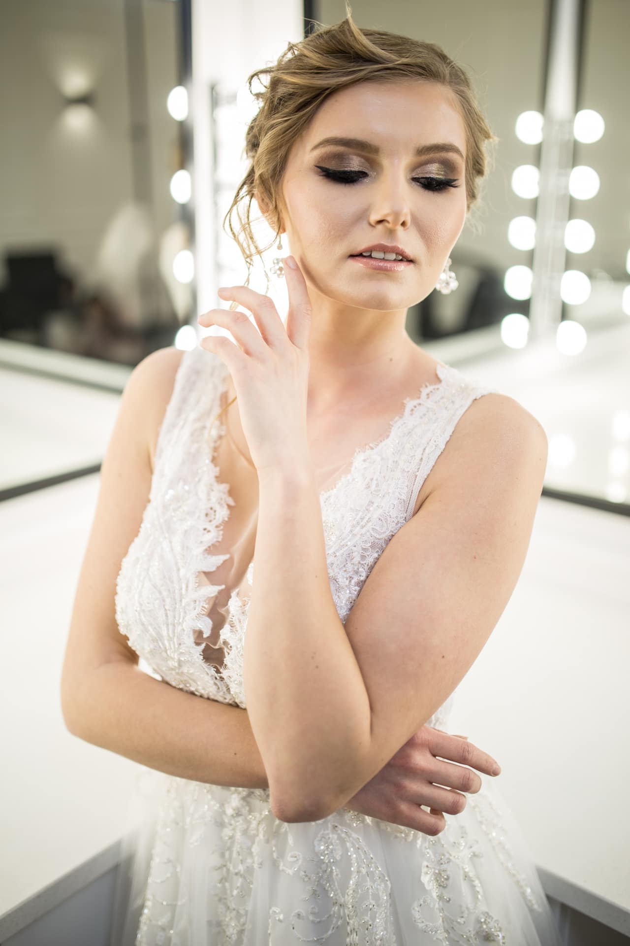 Suknia: Maribel – Salon sukien ślubnych. Wnętrza: Stylish Make-up Atelier