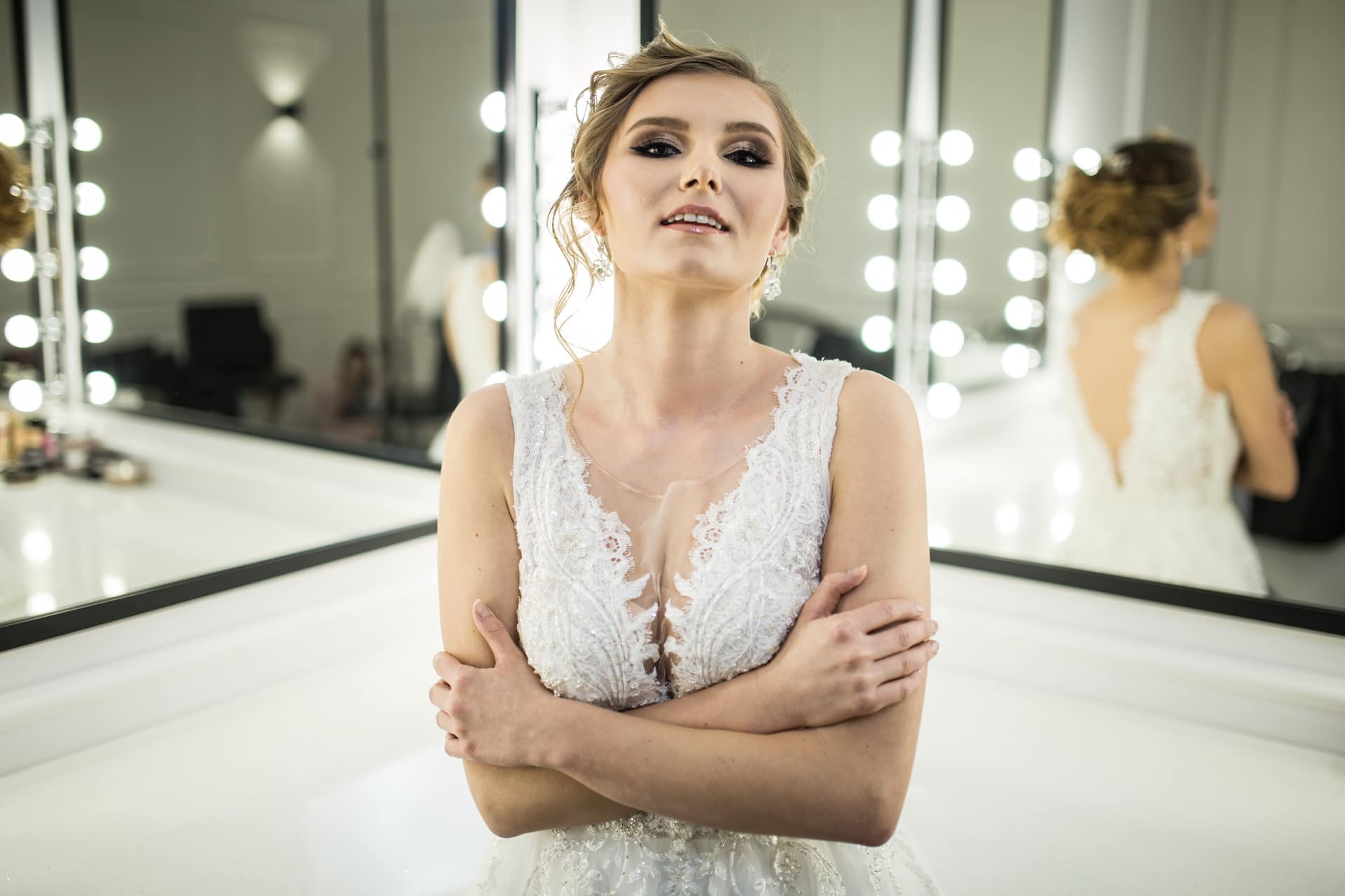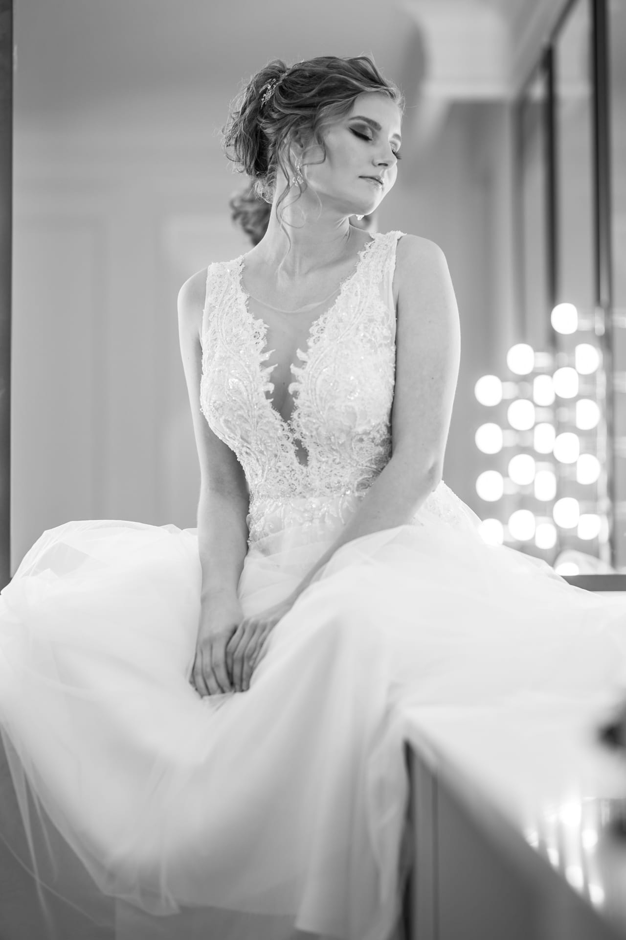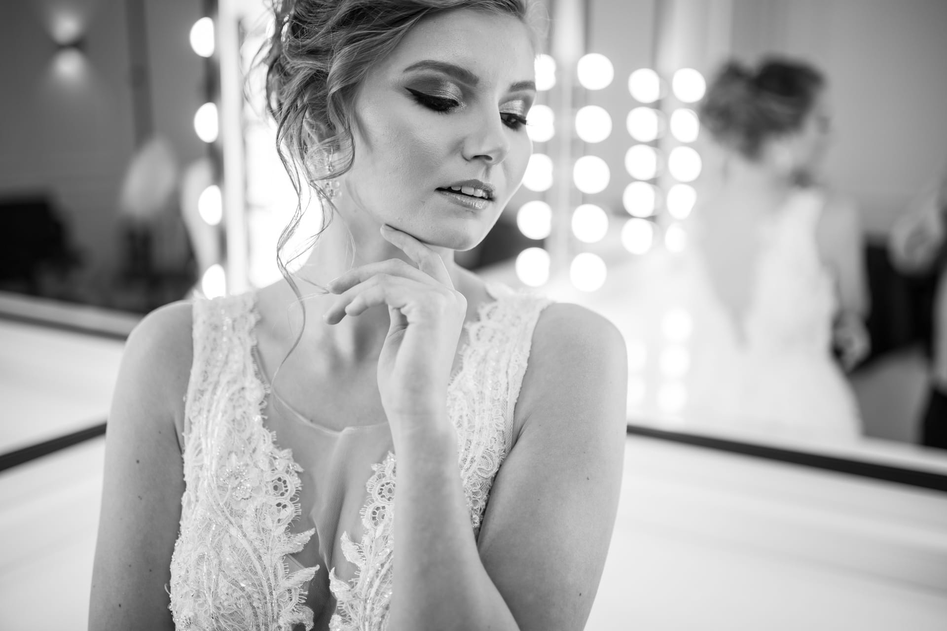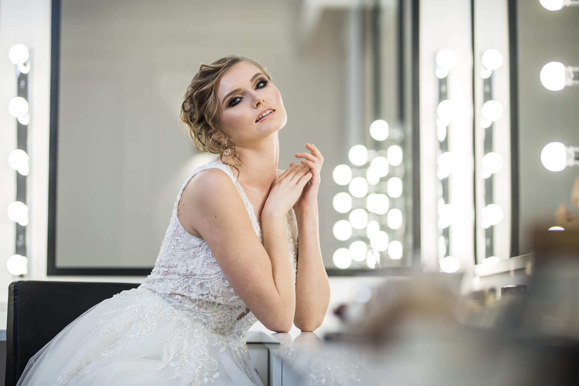 Suknia: Maribel – Salon sukien ślubnych. Wnętrza: Stylish Make-up Atelier
