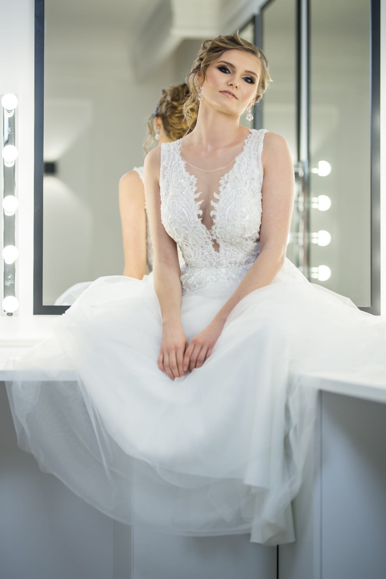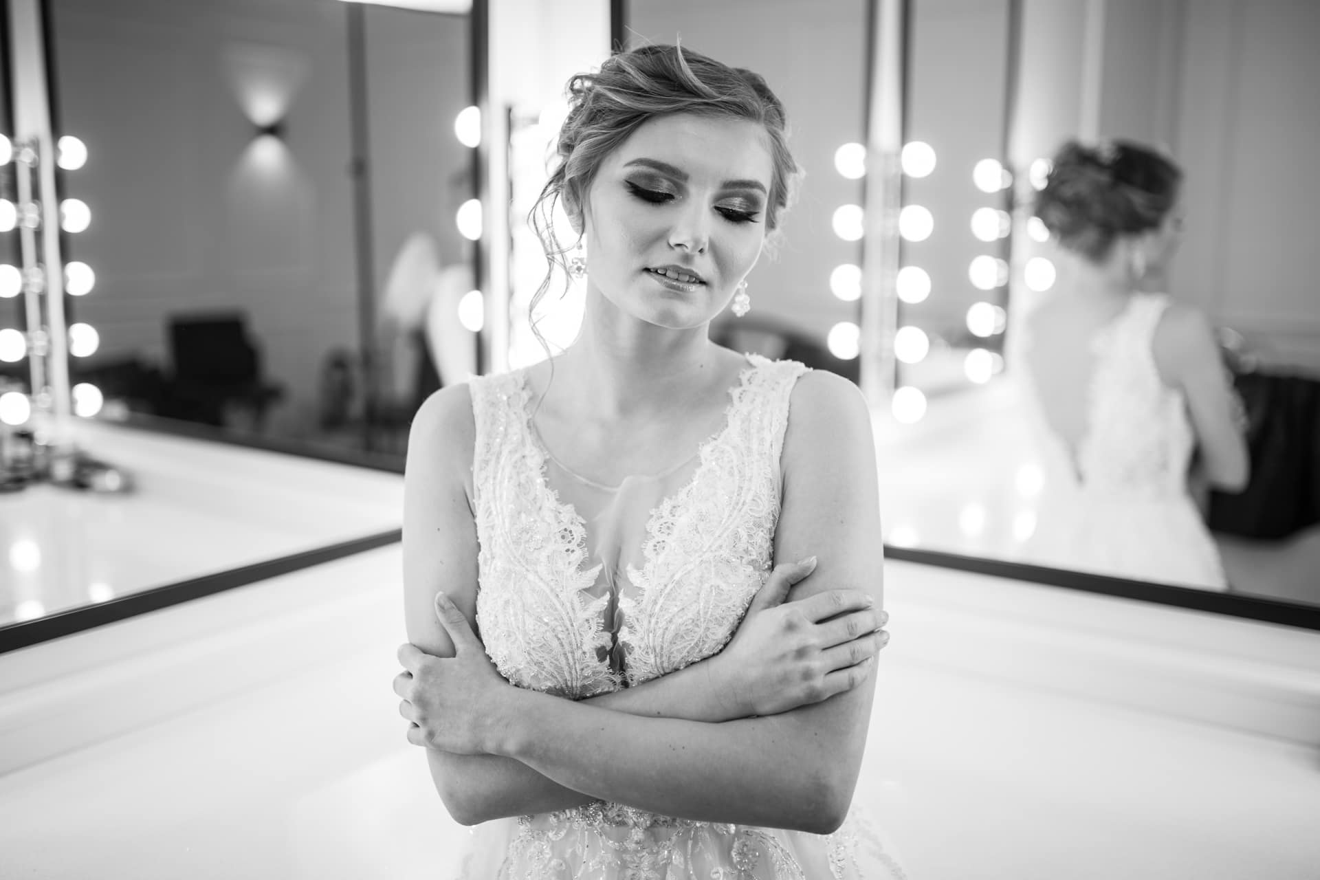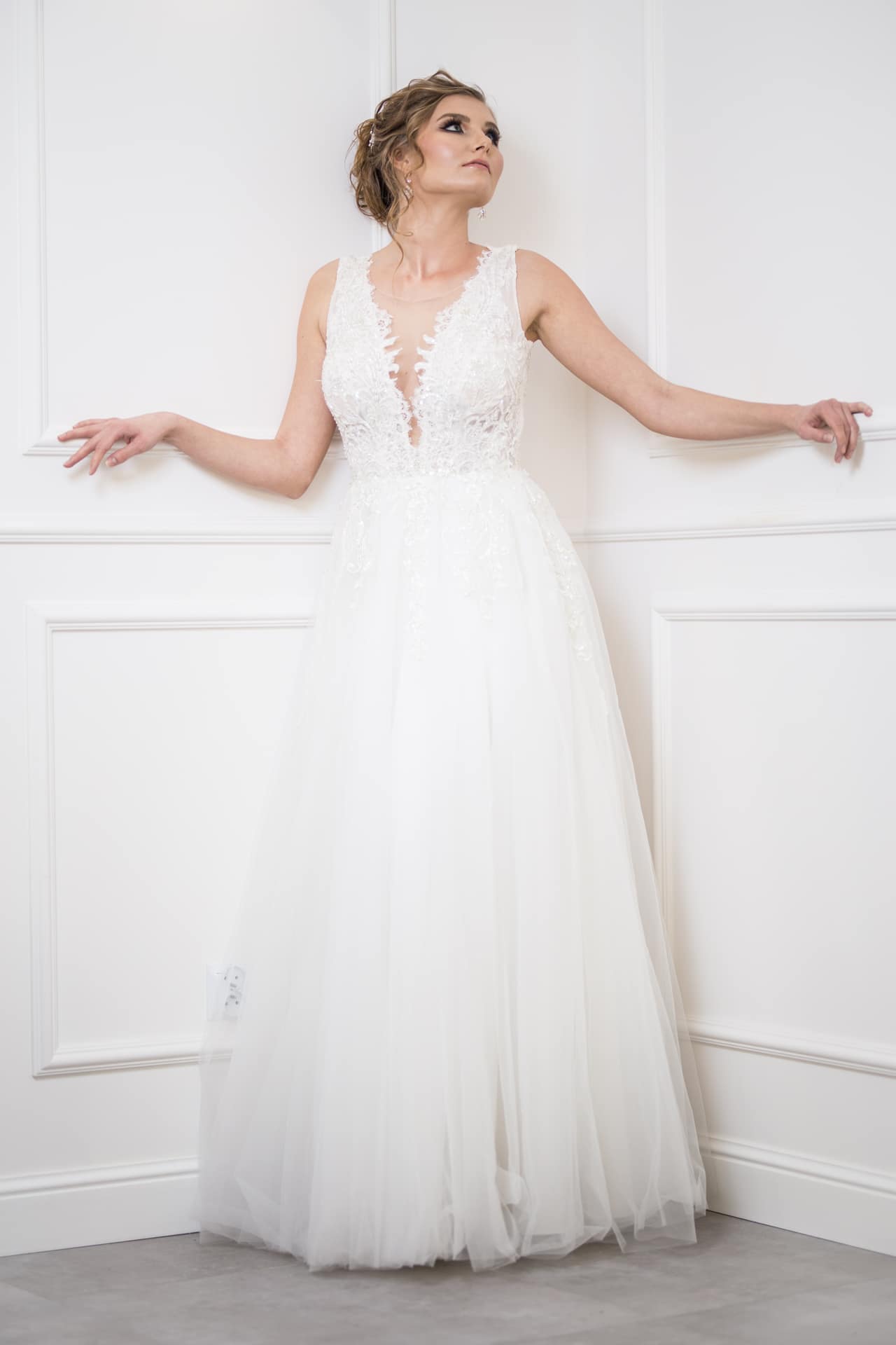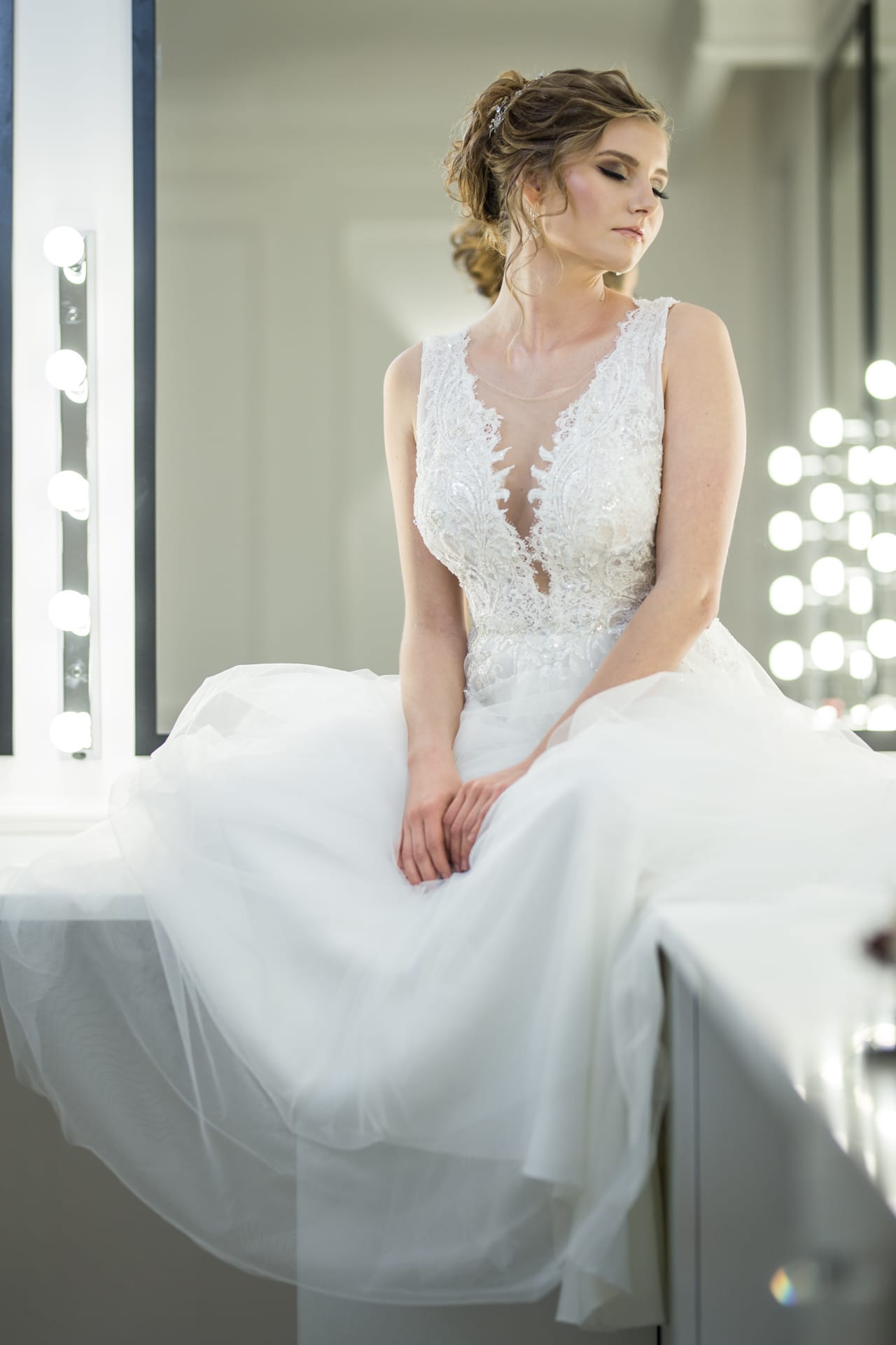 Suknia: Maribel – Salon sukien ślubnych. Wnętrza: Stylish Make-up Atelier