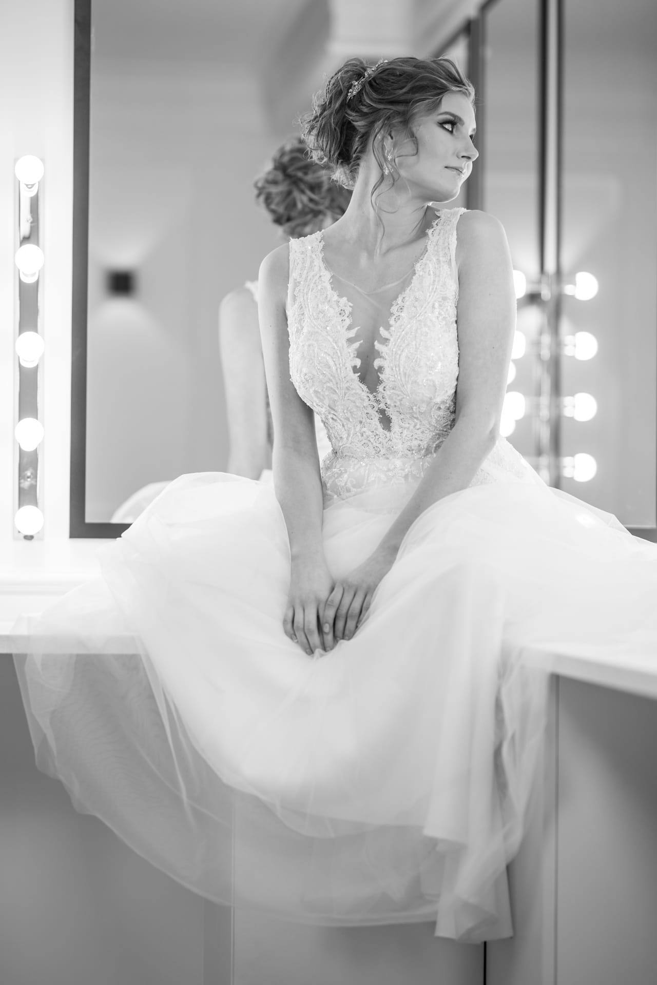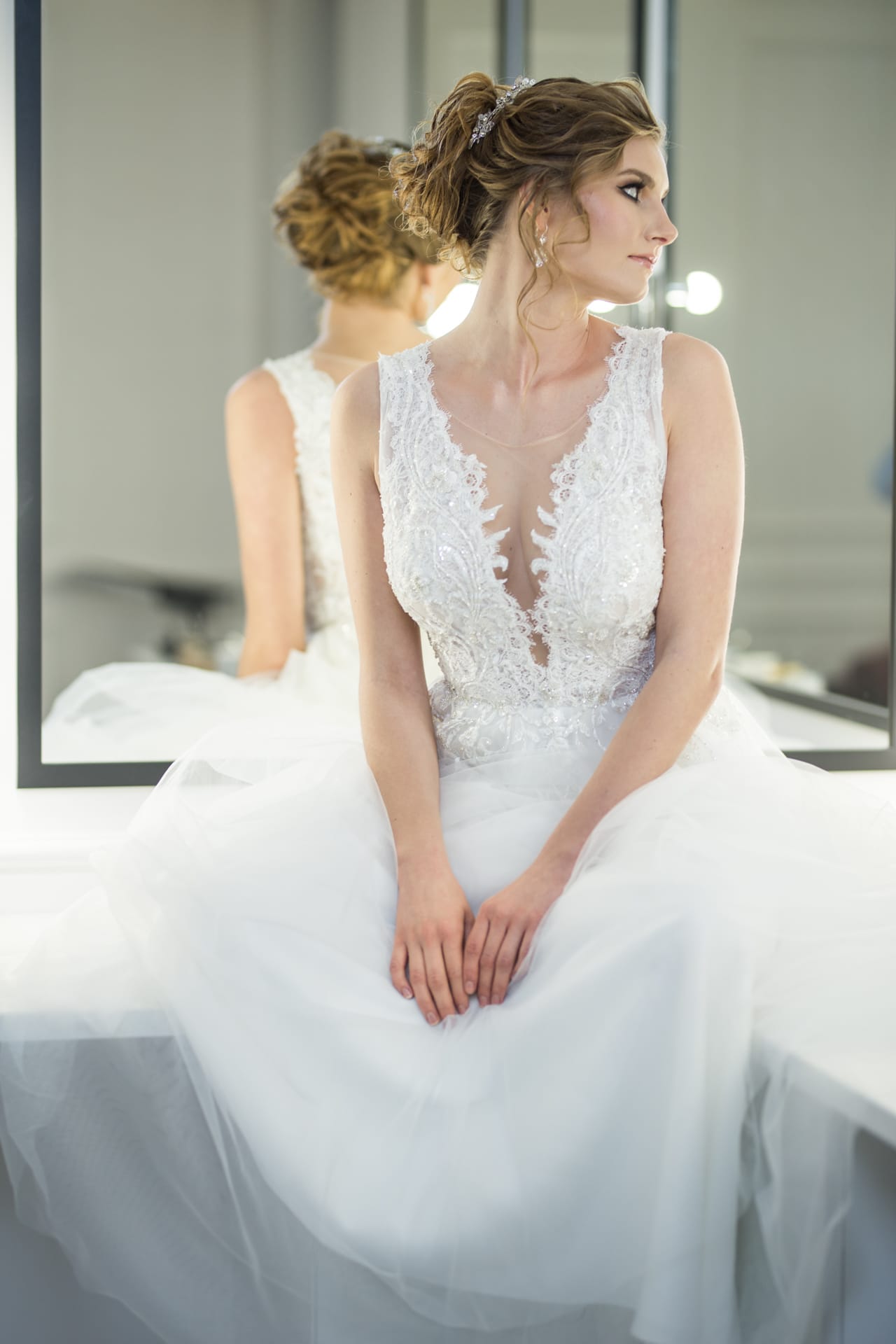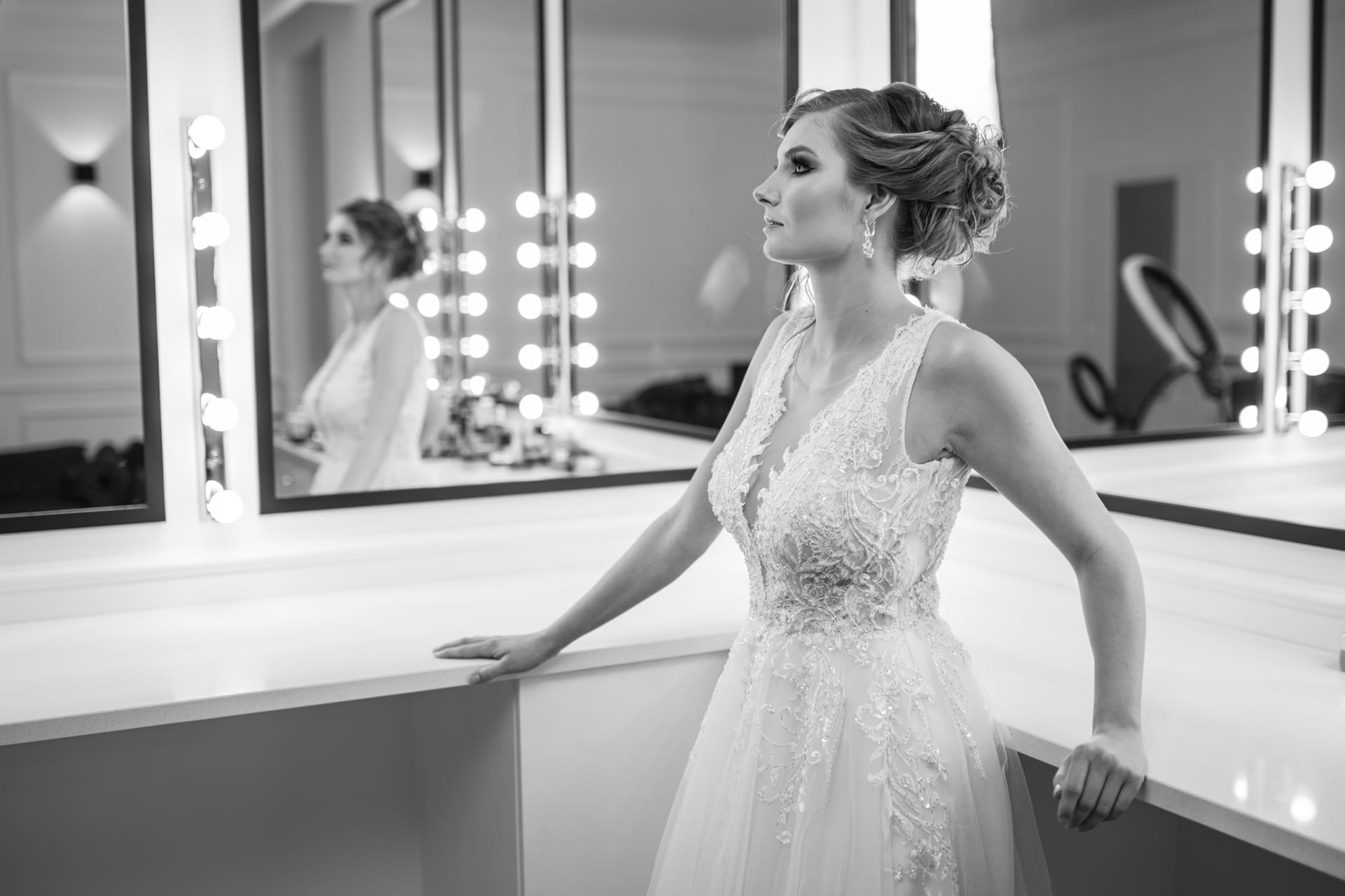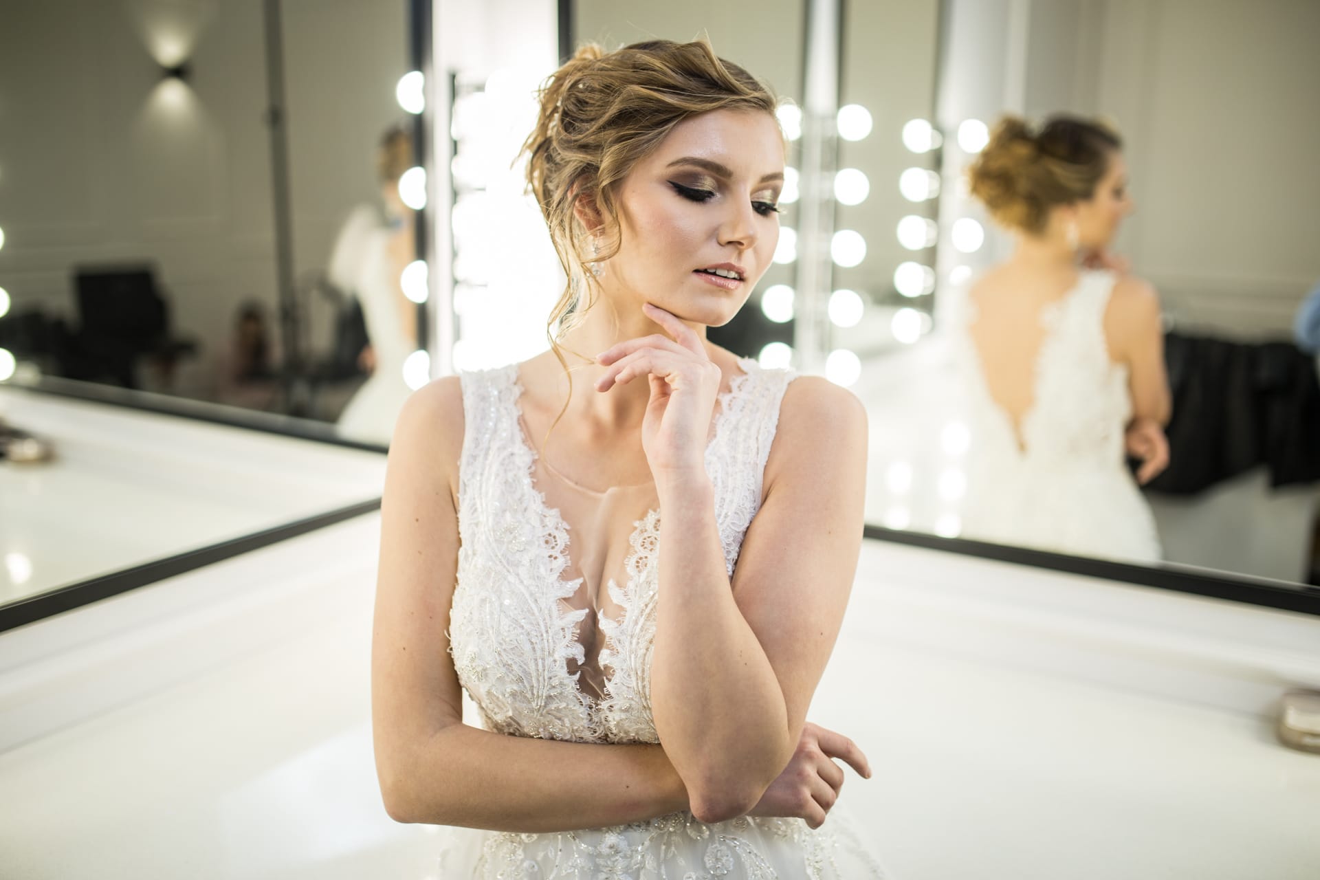 Suknia: Maribel – Salon sukien ślubnych. Wnętrza: Stylish Make-up Atelier