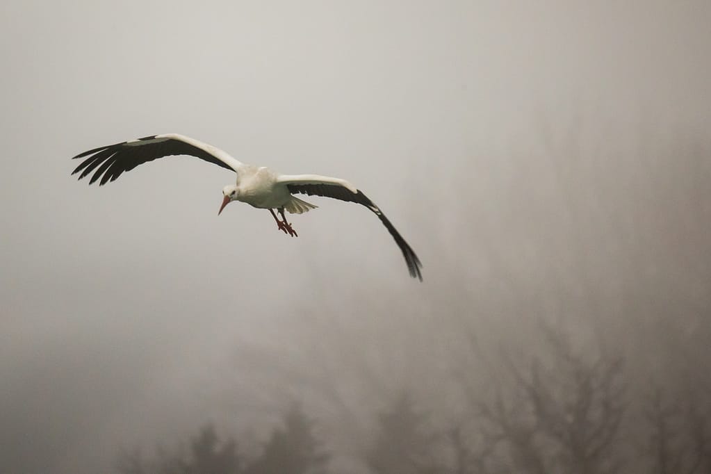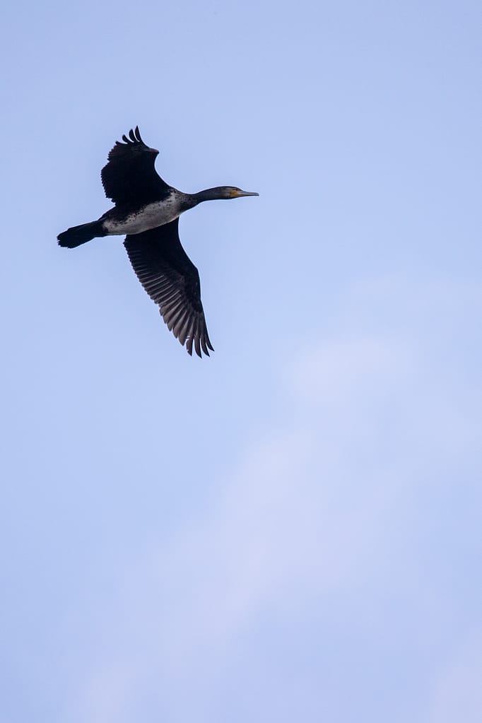 AF chodzi sprawnie, można też włączyć ogranicznik od 12 metrów do nieskończoności, który jeszcze bardziej go przyspiesza. Potrafi pięknie śledzić, na przykład kormorana w locie. Potrafi też się spocić na ciemnym ptaku na jasnym niebie, co wydaje się dziwne. Potrafi też się zgubić w trudnych warunkach, jak tutaj we mgle (a szkoda mi, jako początkującemu w tym temacie, obu ujęć):