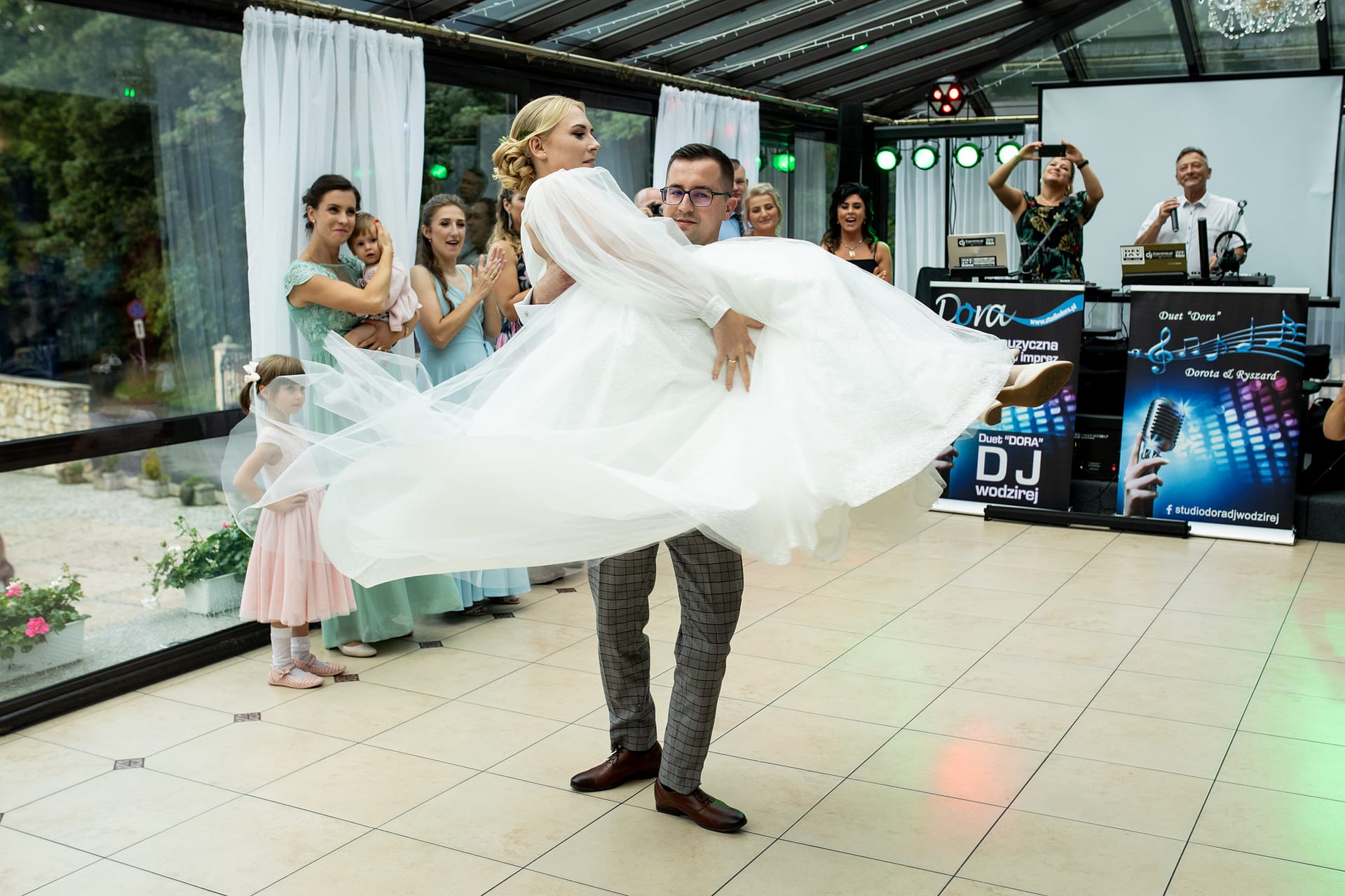 Wesele odbyło się w sali Madeleine w Lwówku Śląskim. Gości bawiło Studio DJ Dora, a za kwiaty odpowiadała Kwiaciarnia i Pracownia Ślubna.