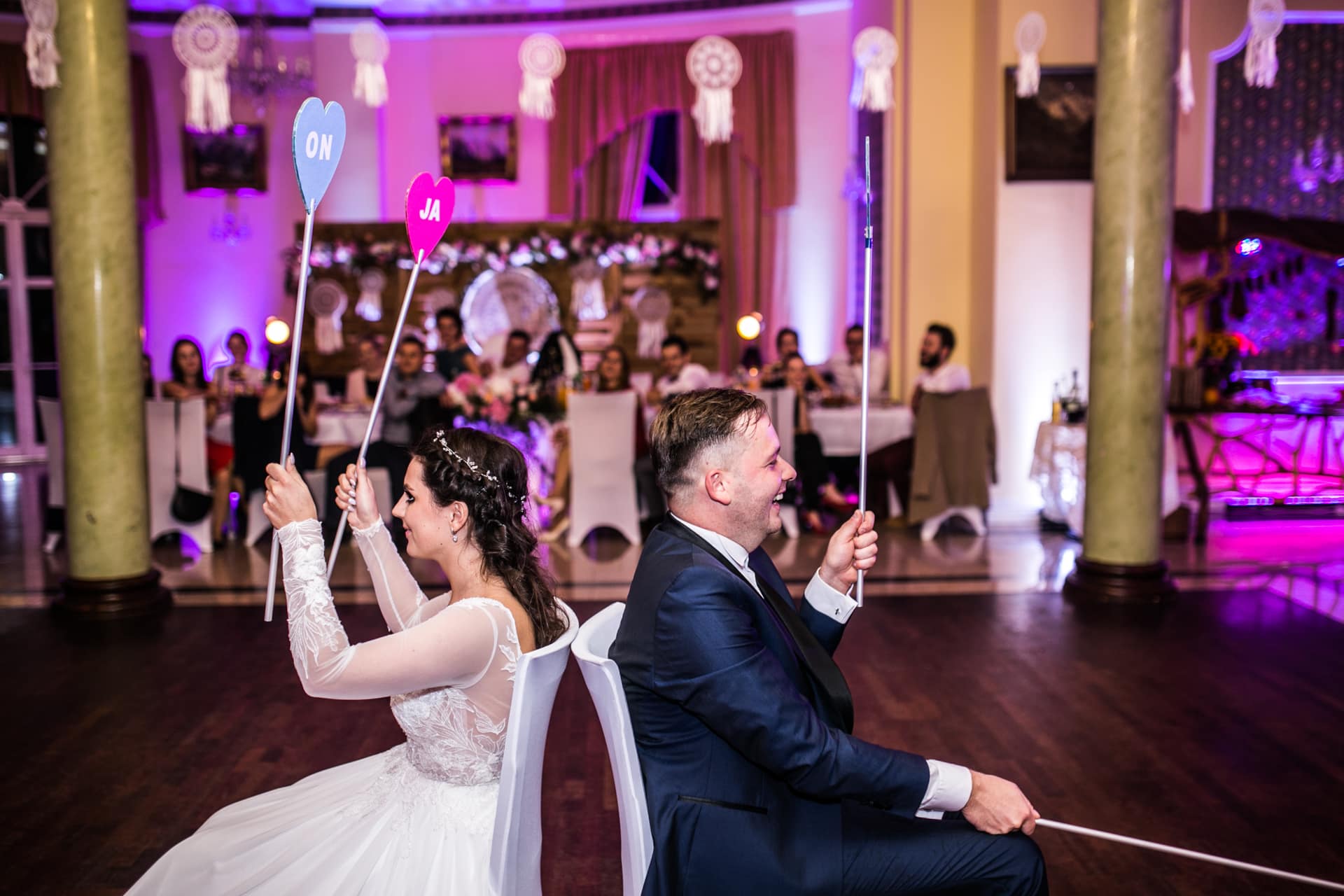 W dniu ślubu wyglądało na to, że faktycznie chcą ten ślub wziąć. Rechotali się i śmiali plus wymyślili kilka usprawnień gwarantujących, że dzień ten będzie jeszcze ciekawszy i ładniejszy. Wzbogacili choćby Hotel Garden nie tylko o elementy wystroju będące dziełem rąk mamy Oli, ale także o fantastyczne oświetlenie, które uatrakcyjniło wizualnie tę zajefajną imprezę. No i zatrudnili do filmowania Szymona z REDwedding, z którym baaardzo lubię współpracować. A make up robiła niezawodna Monika Witek.
