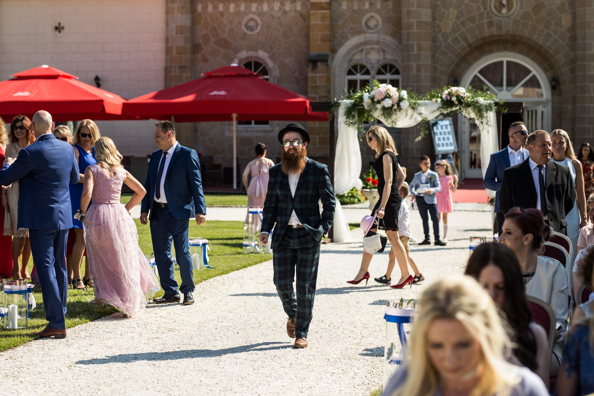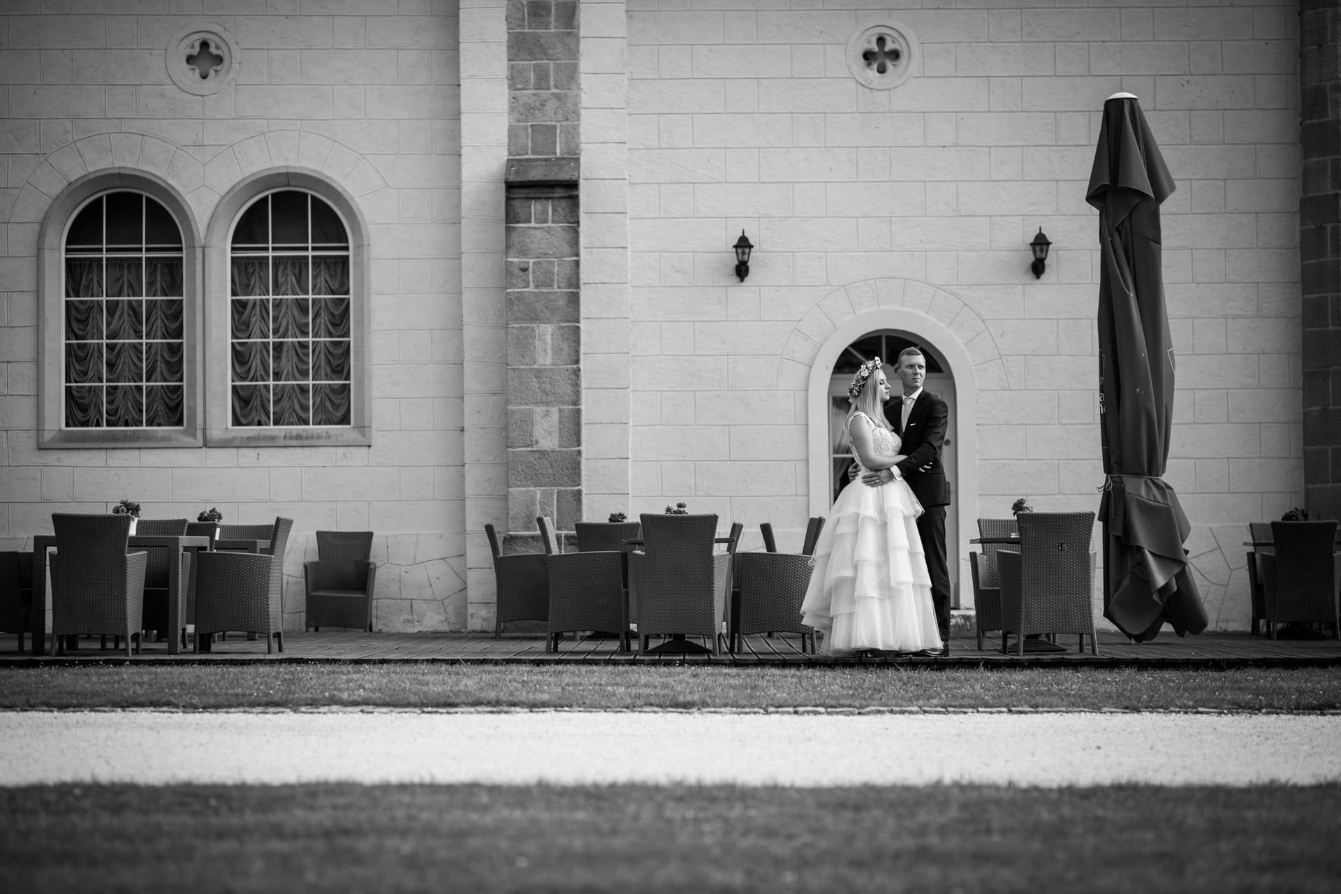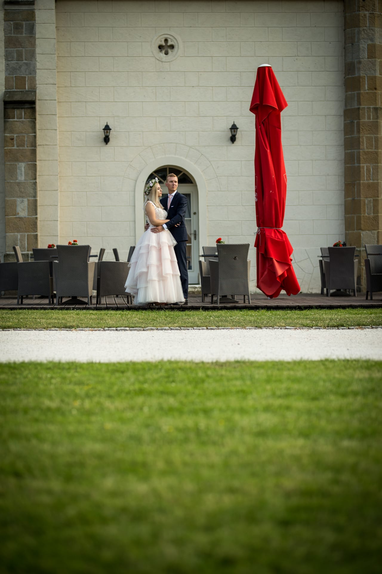Sam ślub odbył się na dziedzińcu pałacu w pełnym słońcu a tuż po nim rozpoczęła się impreza, którą jak zawsze znakomicie i smakowicie rozbujał DJ Jegomość. Dwa dni później spotkaliśmy się w tym samym miejscu, aby pobawić się trochę przed obiektywem i poszerzyć nieco zbiór pamiątek w moim aparacie.