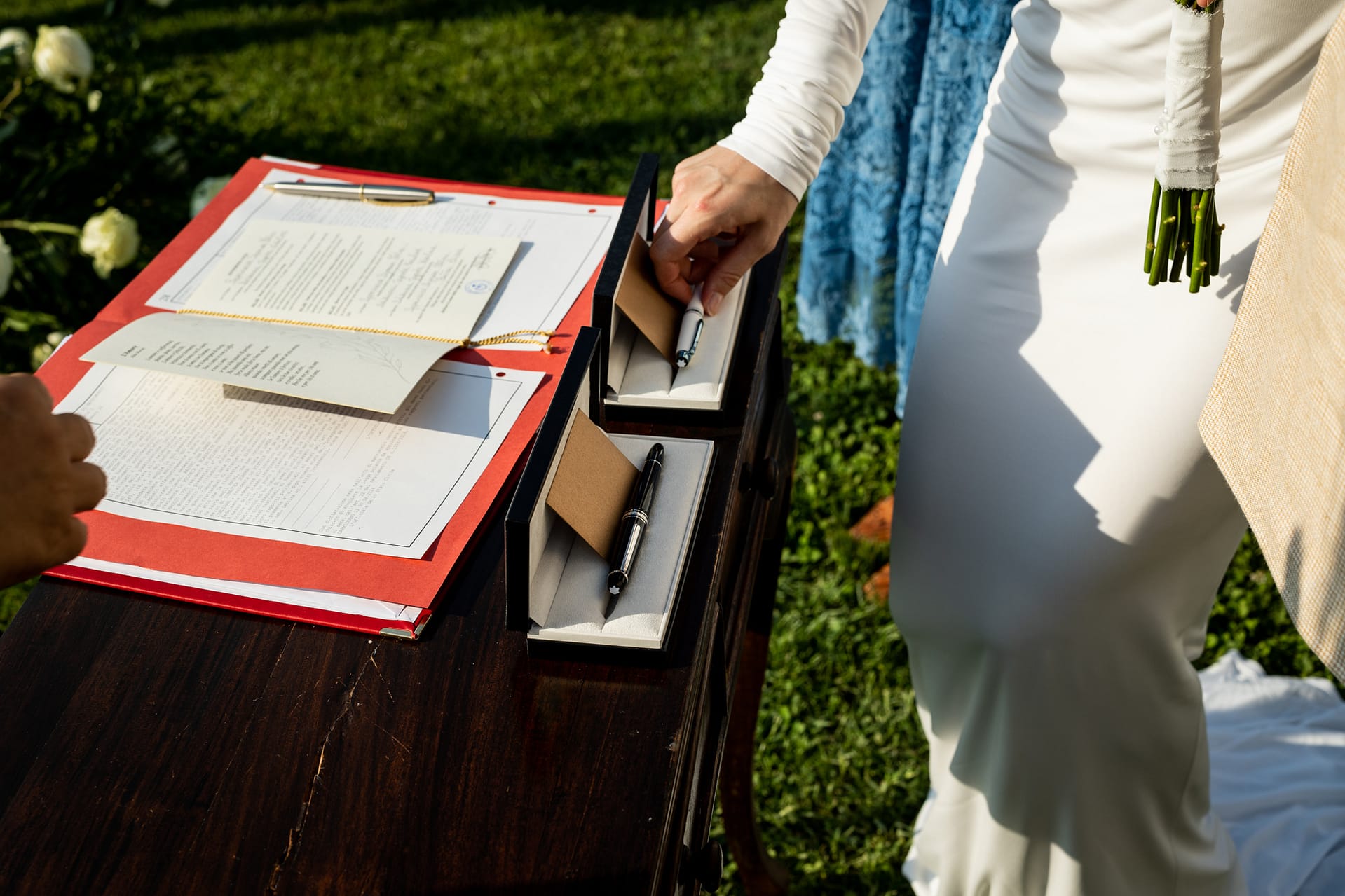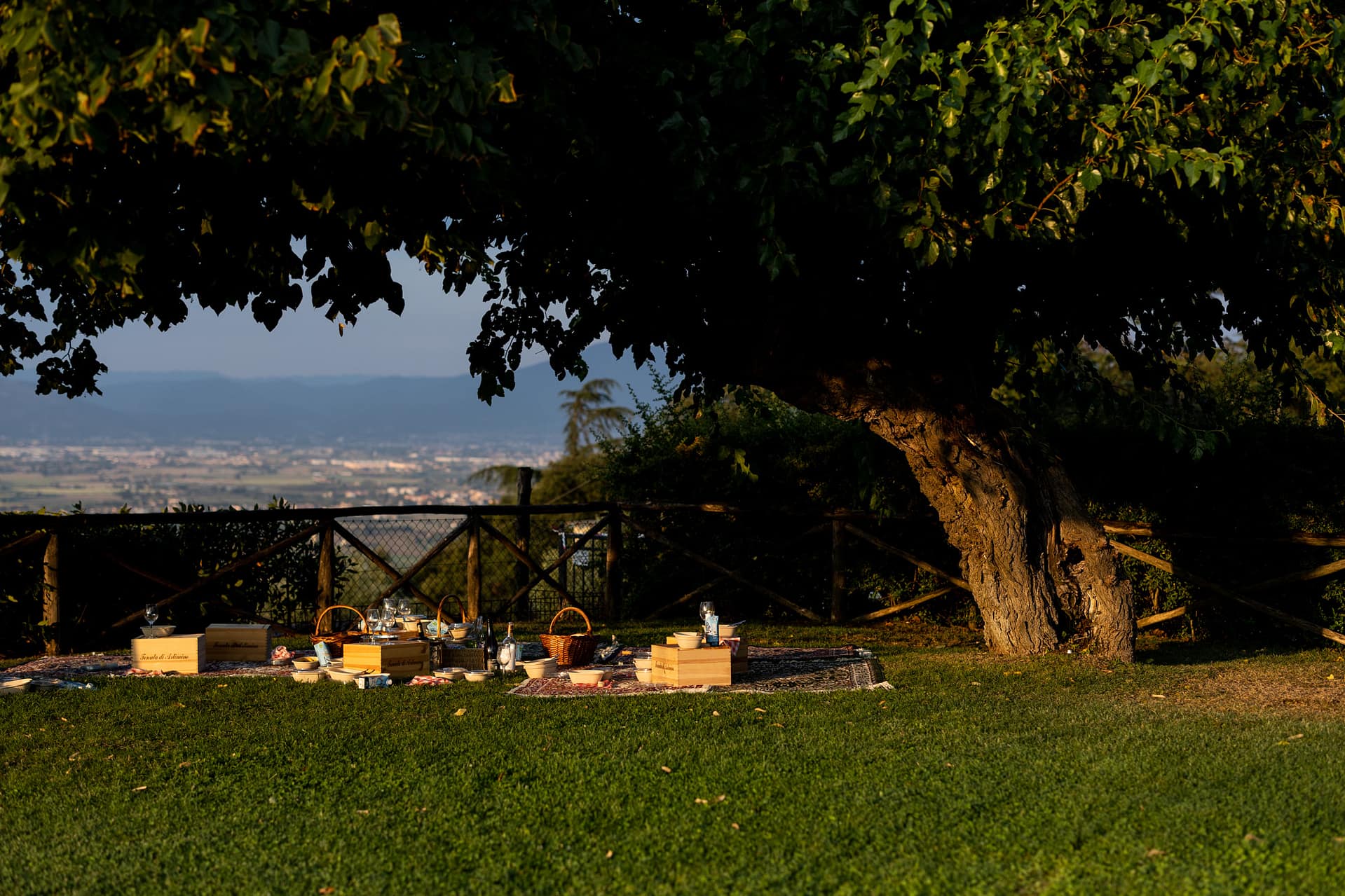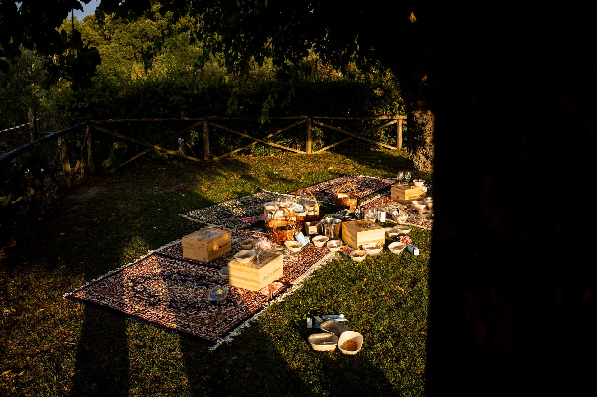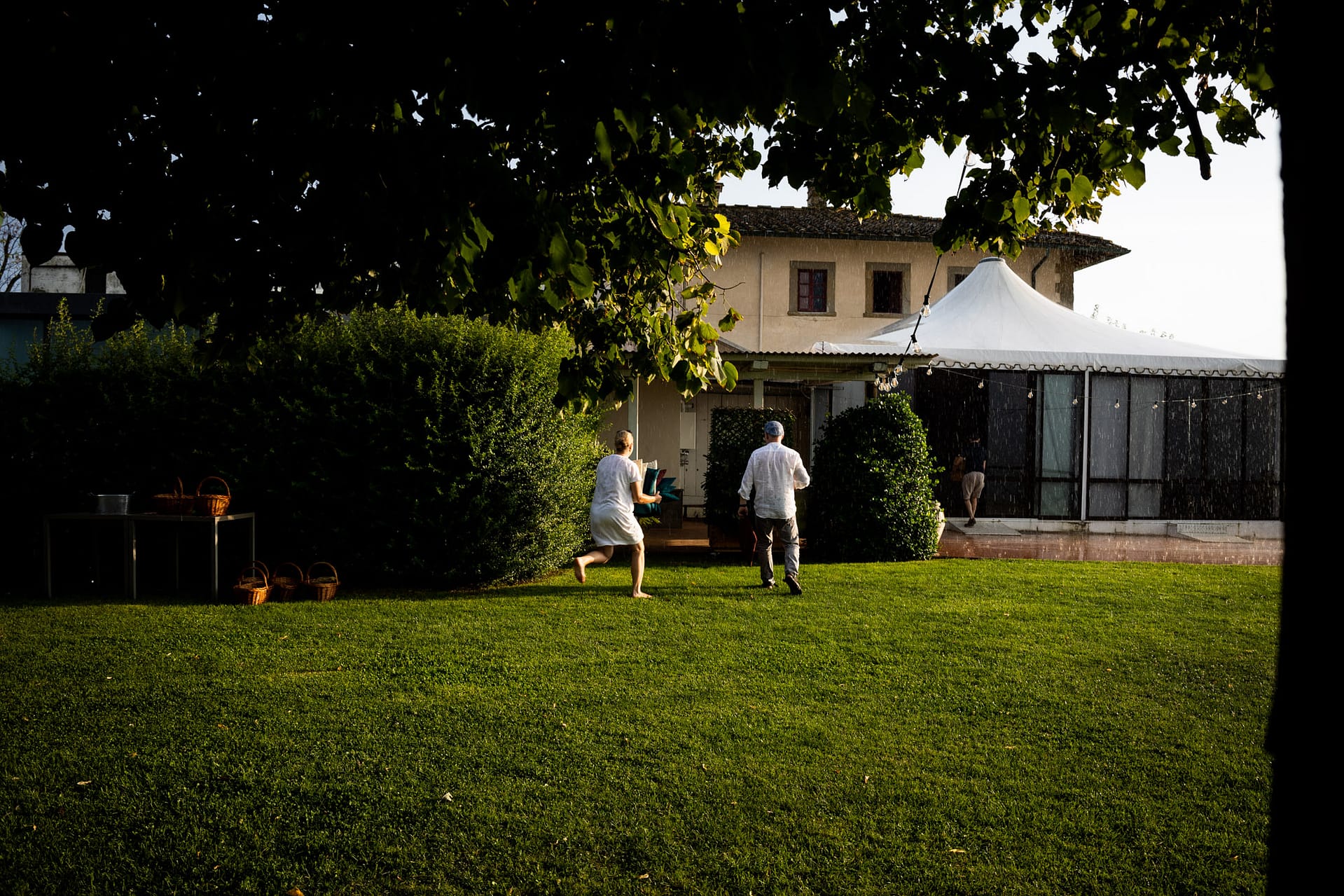 Dzień przed ślubem odbył się prawdziwy piknik na trawie ozdobiony słońcem, deszczem i tęczą. Dnia następnego, po spokojnych przygotowaniach, plenerowa uroczystość i, również plenerowe, małe przyjęcie dla gości.