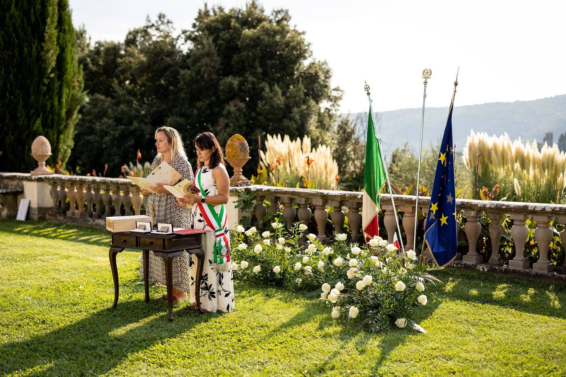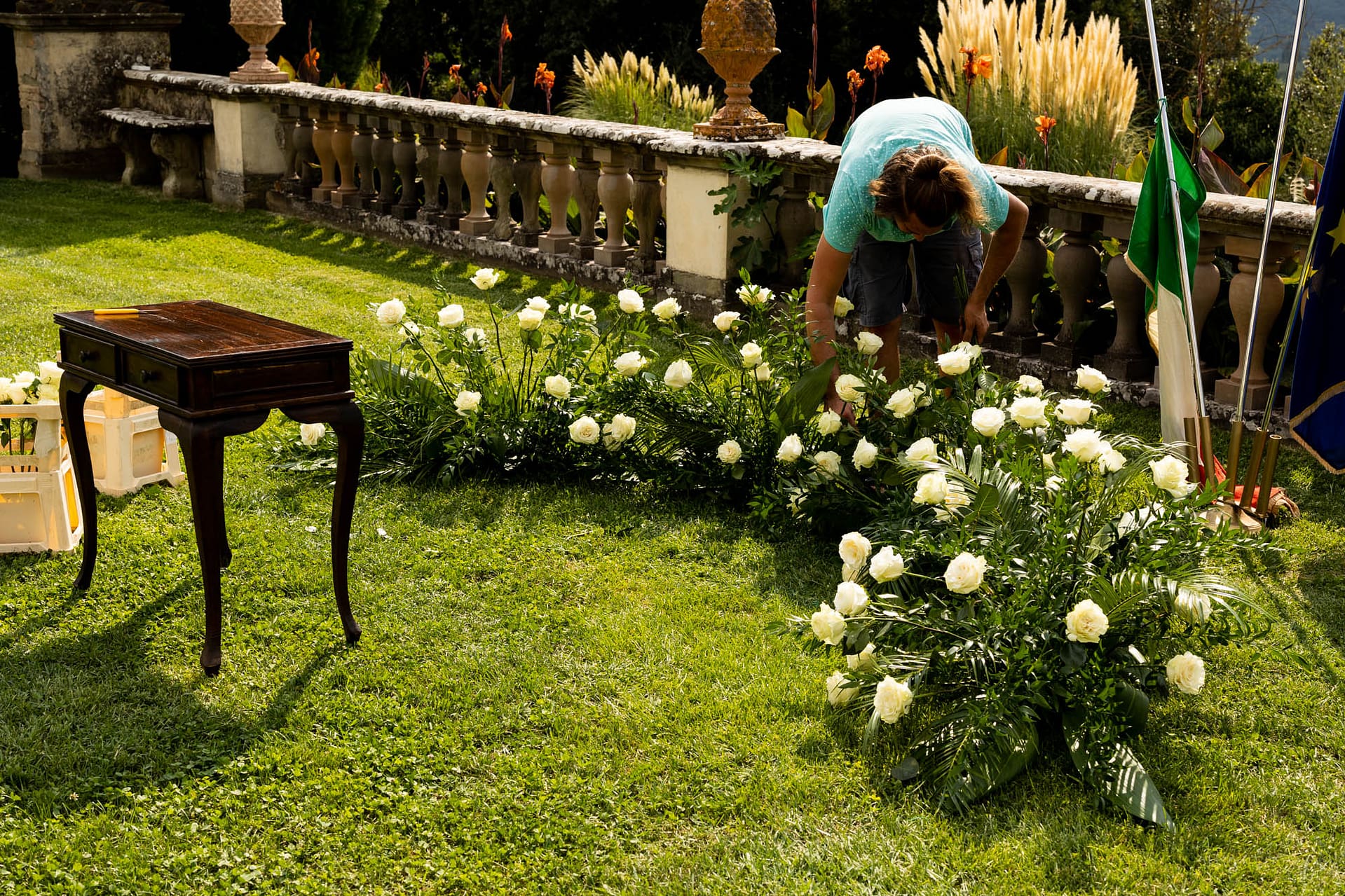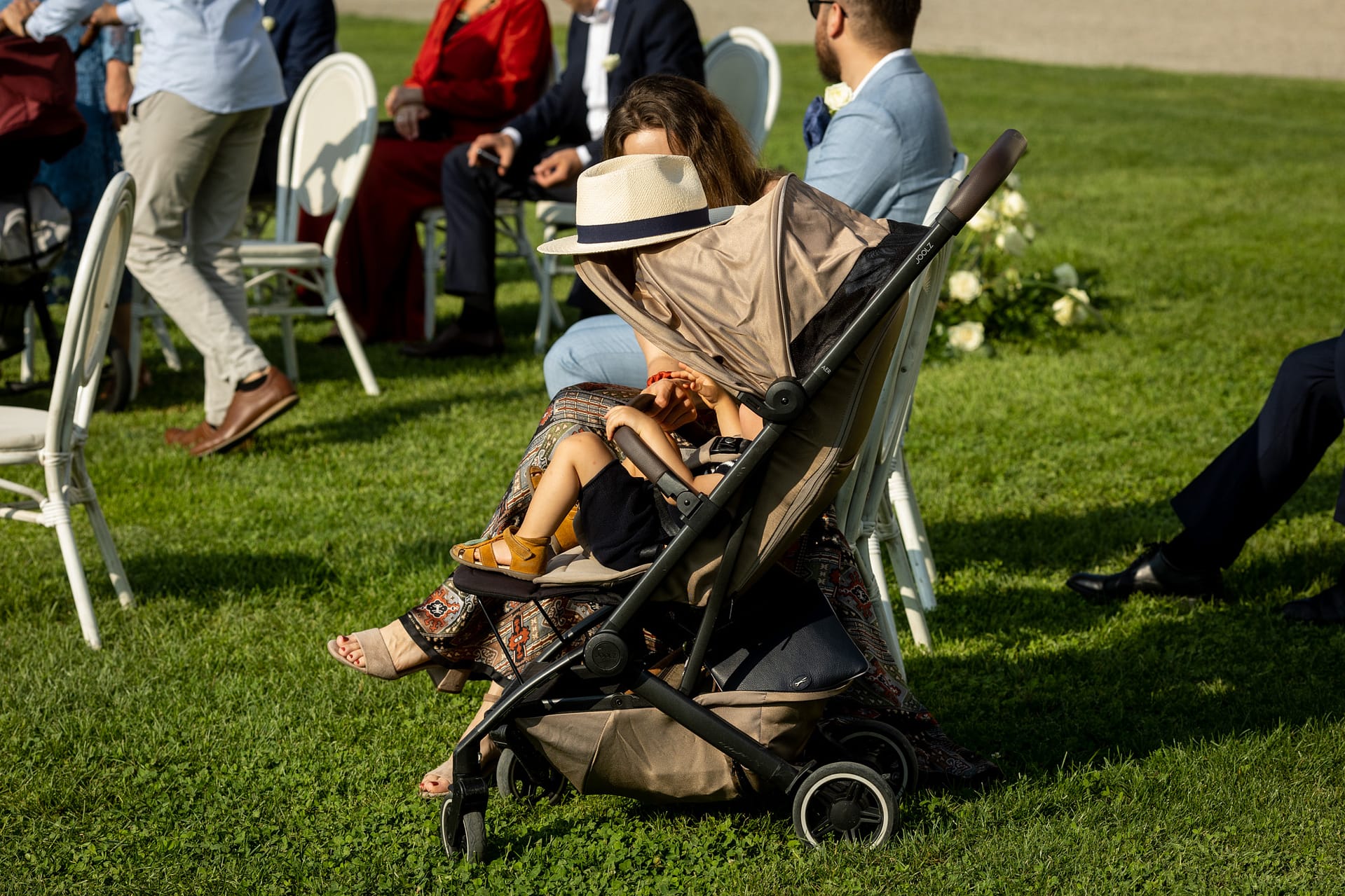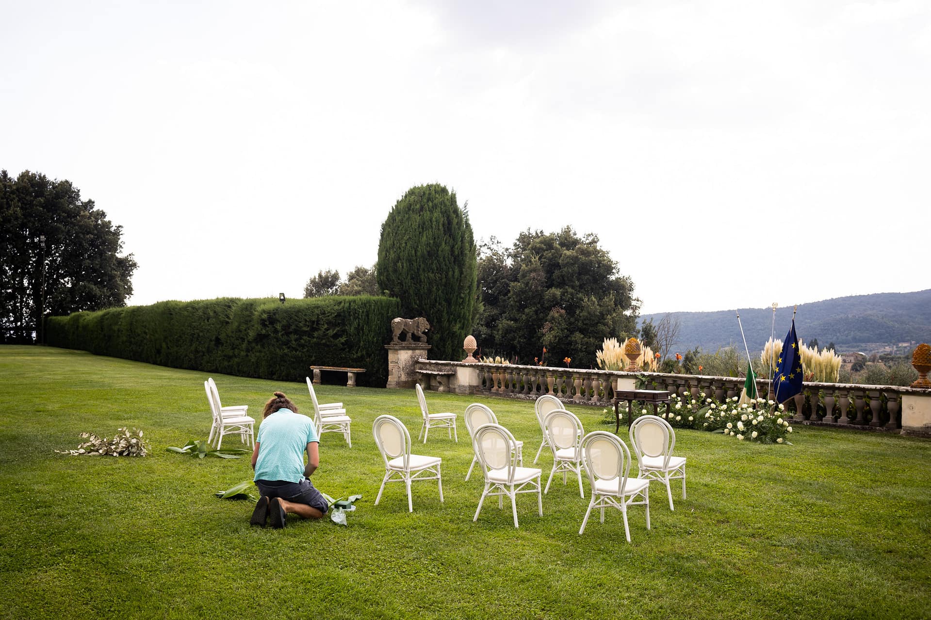 Dzień przed ślubem odbył się prawdziwy piknik na trawie ozdobiony słońcem, deszczem i tęczą. Dnia następnego, po spokojnych przygotowaniach, plenerowa uroczystość i, również plenerowe, małe przyjęcie dla gości.