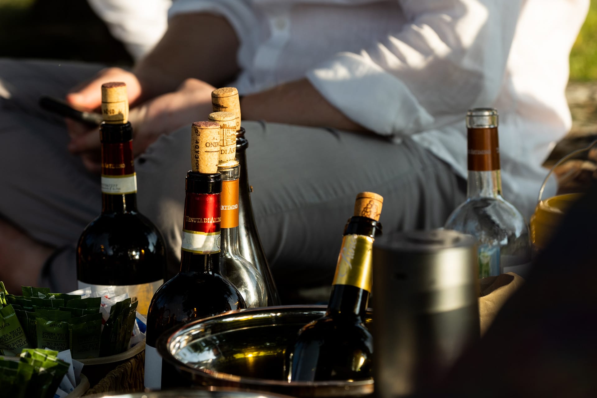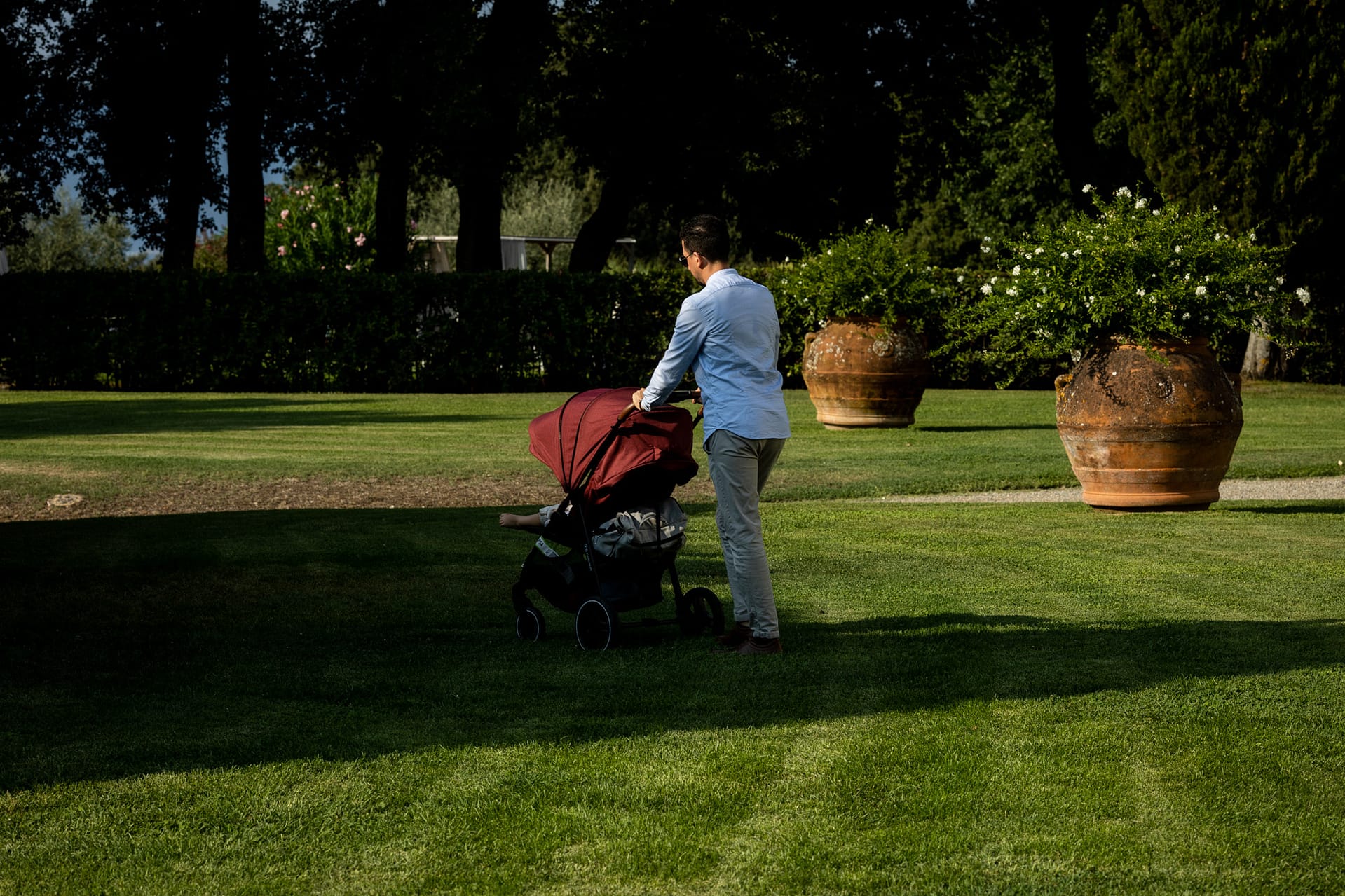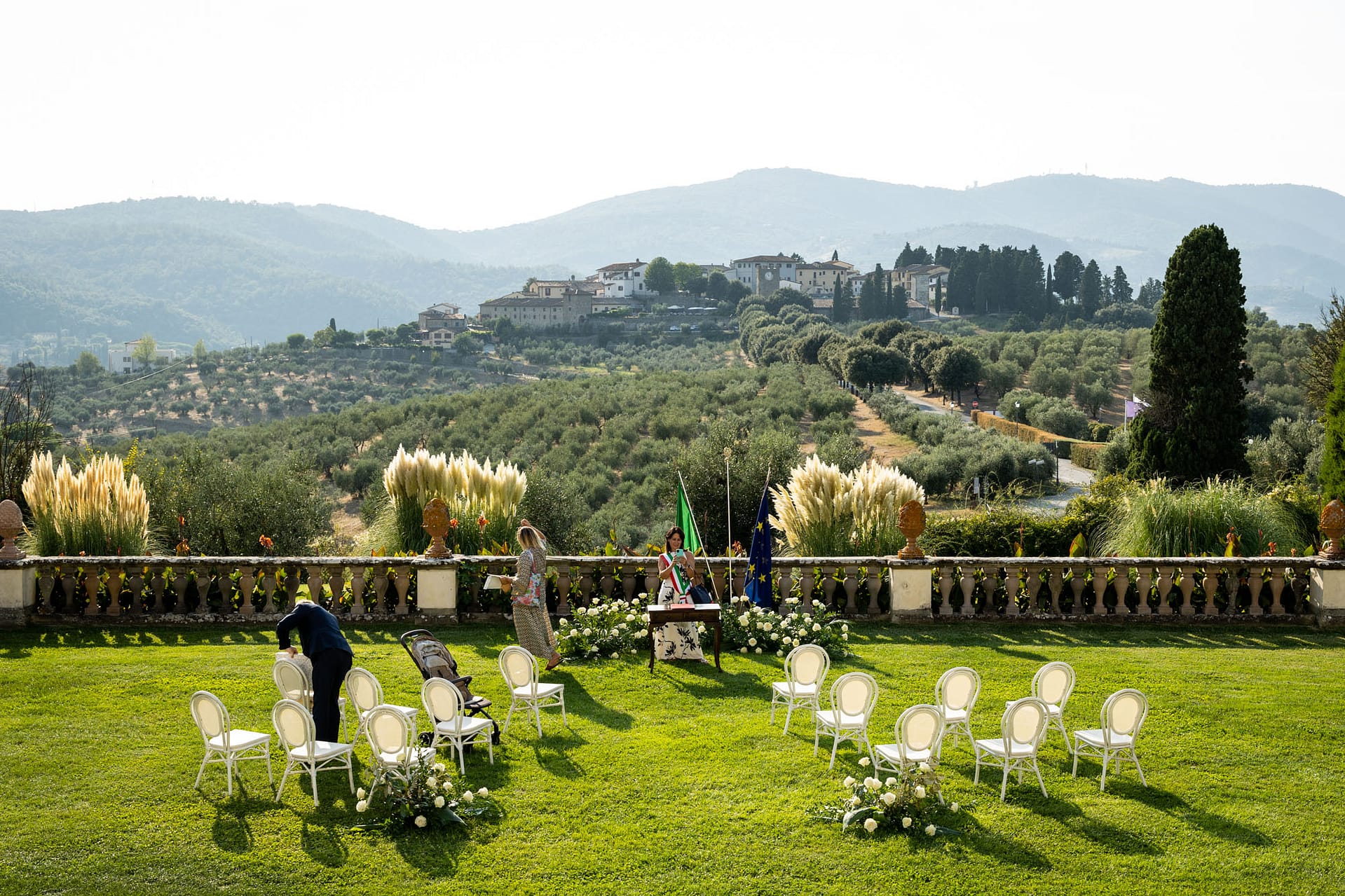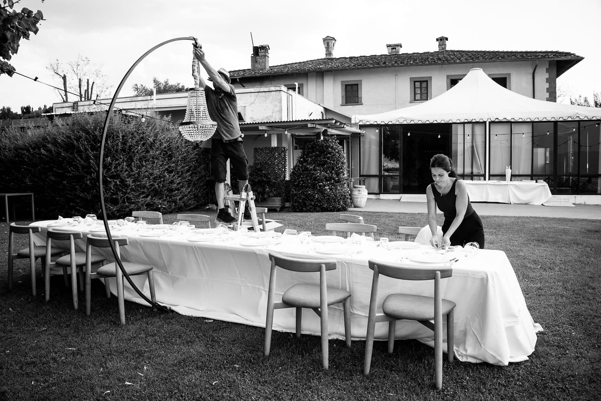 Dzień przed ślubem odbył się prawdziwy piknik na trawie ozdobiony słońcem, deszczem i tęczą. Dnia następnego, po spokojnych przygotowaniach, plenerowa uroczystość i, również plenerowe, małe przyjęcie dla gości.