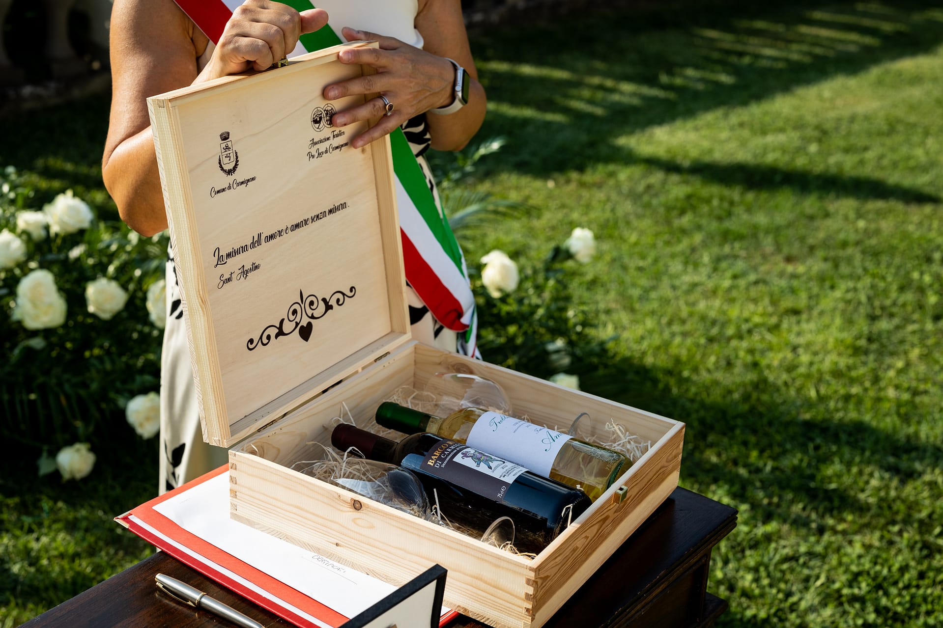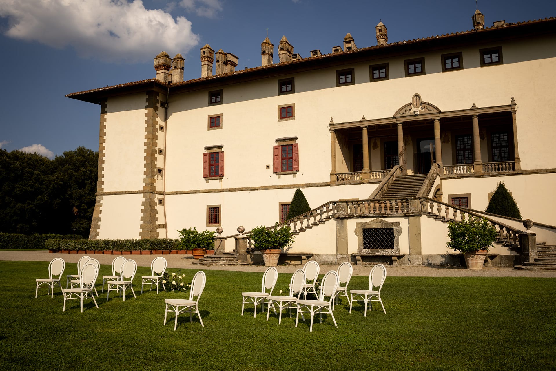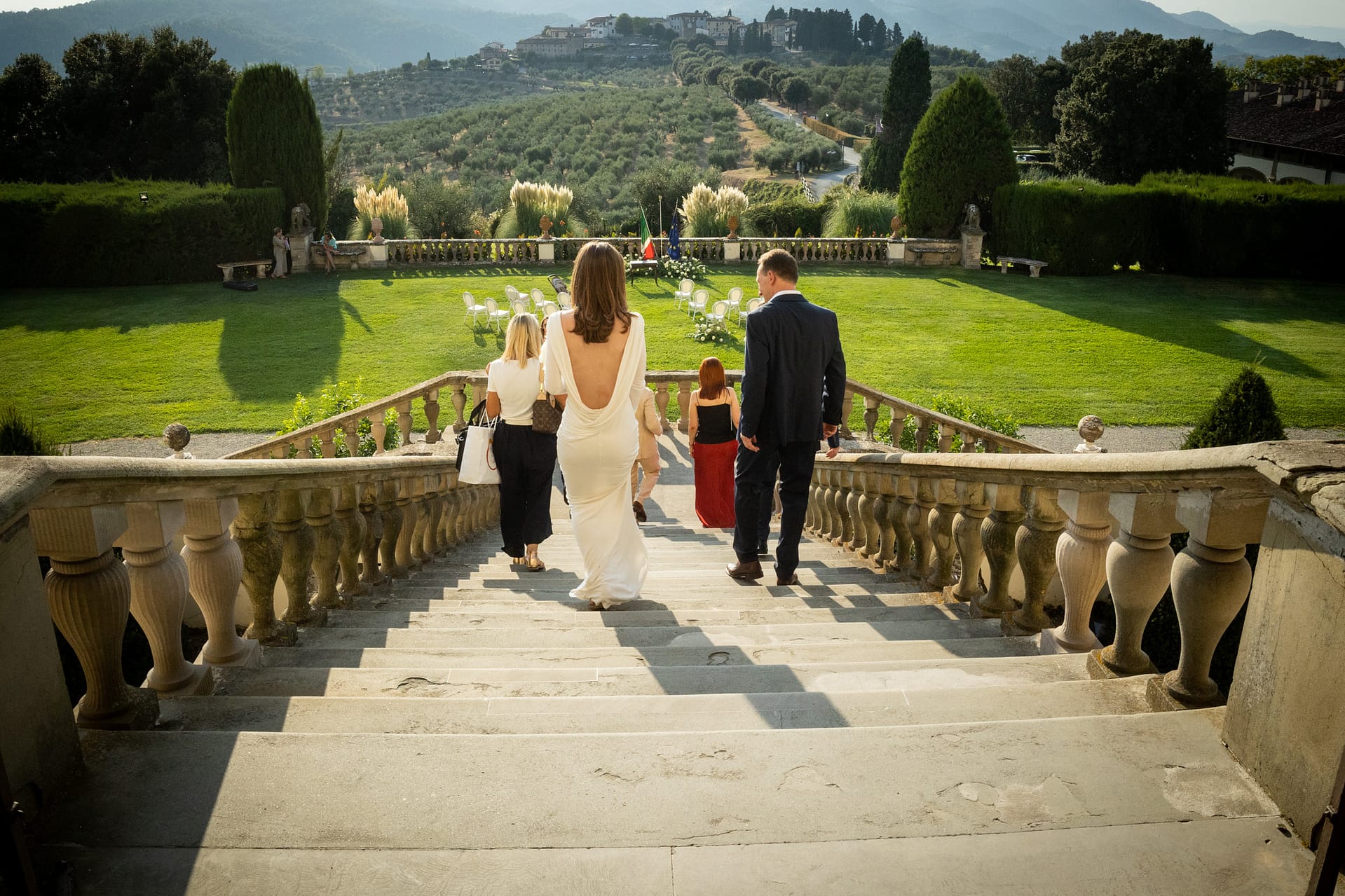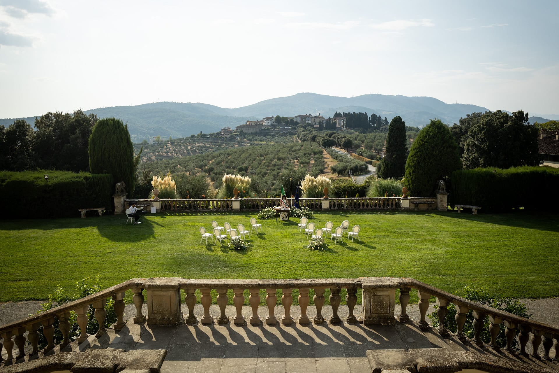 Dzień przed ślubem odbył się prawdziwy piknik na trawie ozdobiony słońcem, deszczem i tęczą. Dnia następnego, po spokojnych przygotowaniach, plenerowa uroczystość i, również plenerowe, małe przyjęcie dla gości.
