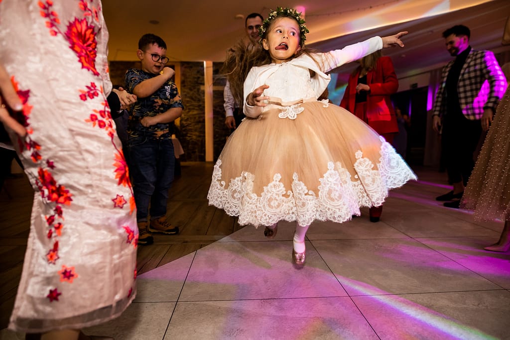 Pięciolatka Kalina w tańcu podczas wesela Elizy i Patryka. Dla mnie to jedno z najlepszych moich zdjęć ślubnych roku 2022.