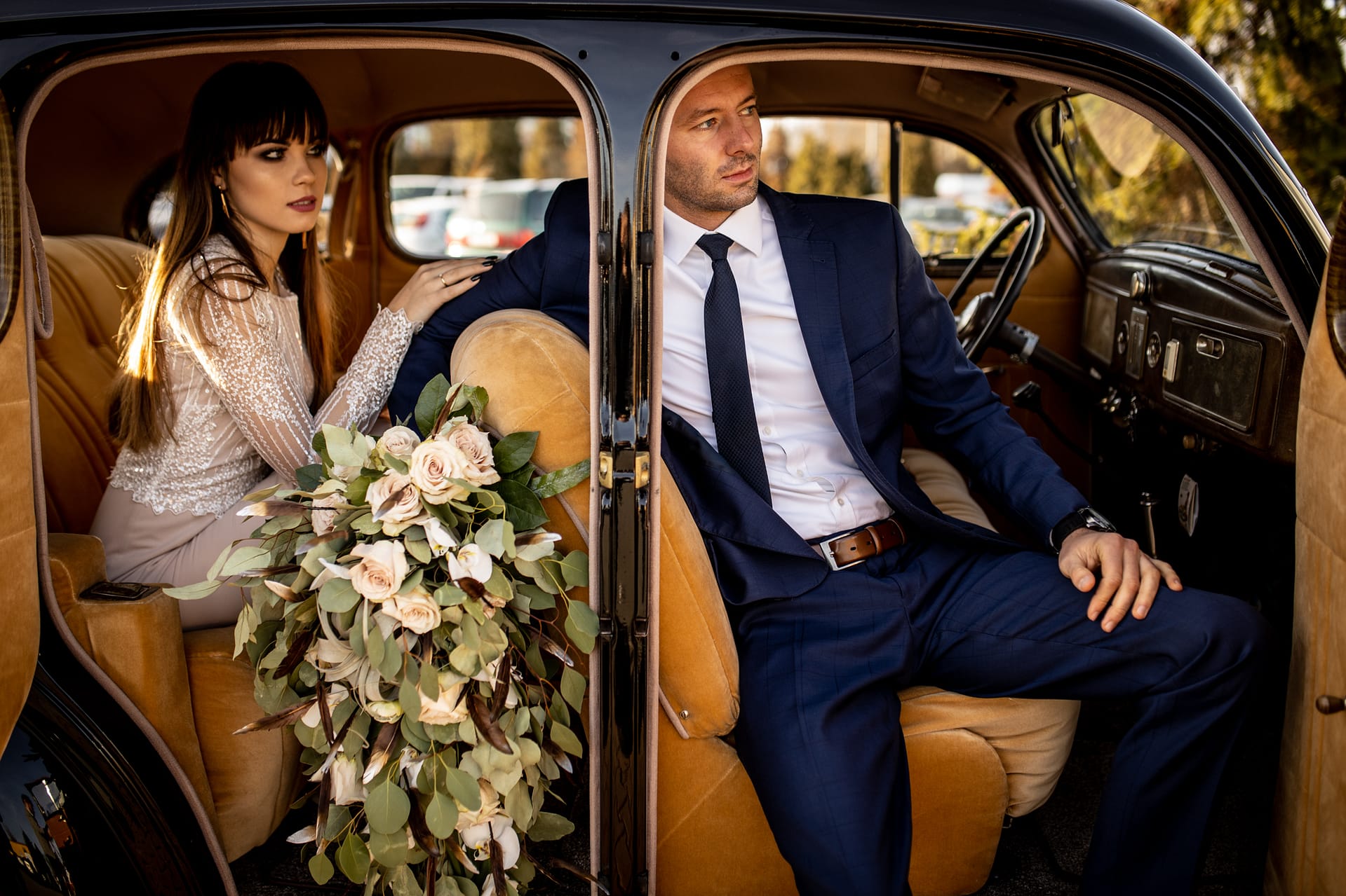 Klaudia i Dawid to bardzo świeżo zaręczona para, która wpadła na Targi Ślubne Kraków aby zapozować z kwiatami, które przygotowała dla nich niesamowita Kwiaciarnia „Różyczka” Sabina Kapera (zalajkować WARTO!) Temperatura była drastyczna (chwała i dzięki wielkie moim modelom za wytrzymałość), otoczenie zdecydowanie „estetyczne inaczej” a czasu niewiele. Na szczęście trafiłem na ludzi stworzonych do takich akcji i na przemiłego pana, który udostępnił nam na chwilę przecudne auto marki DeSoto.