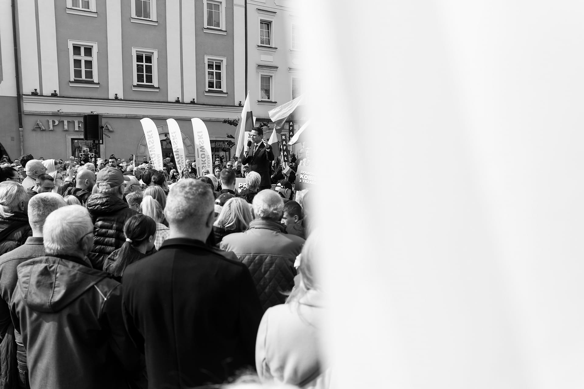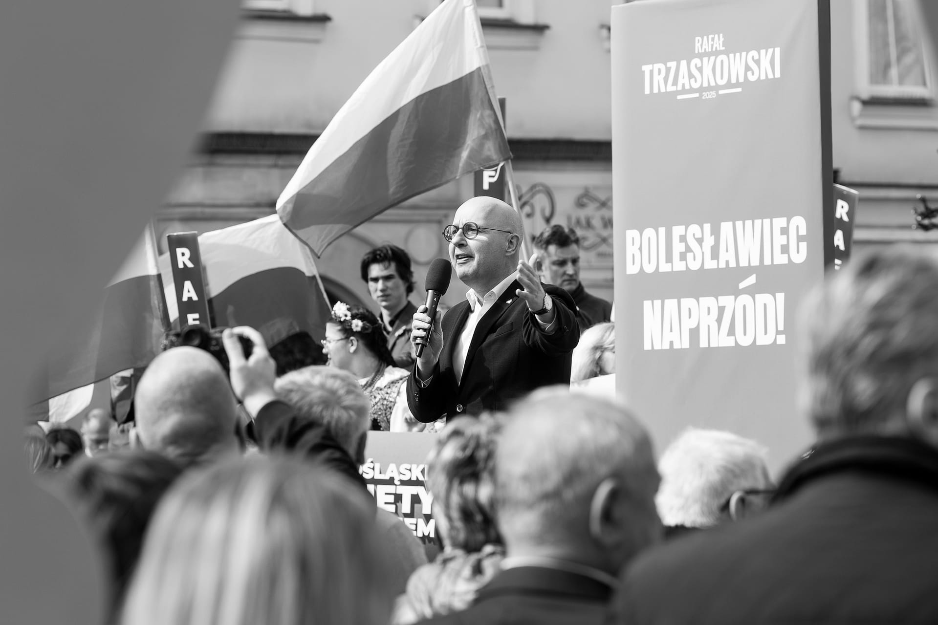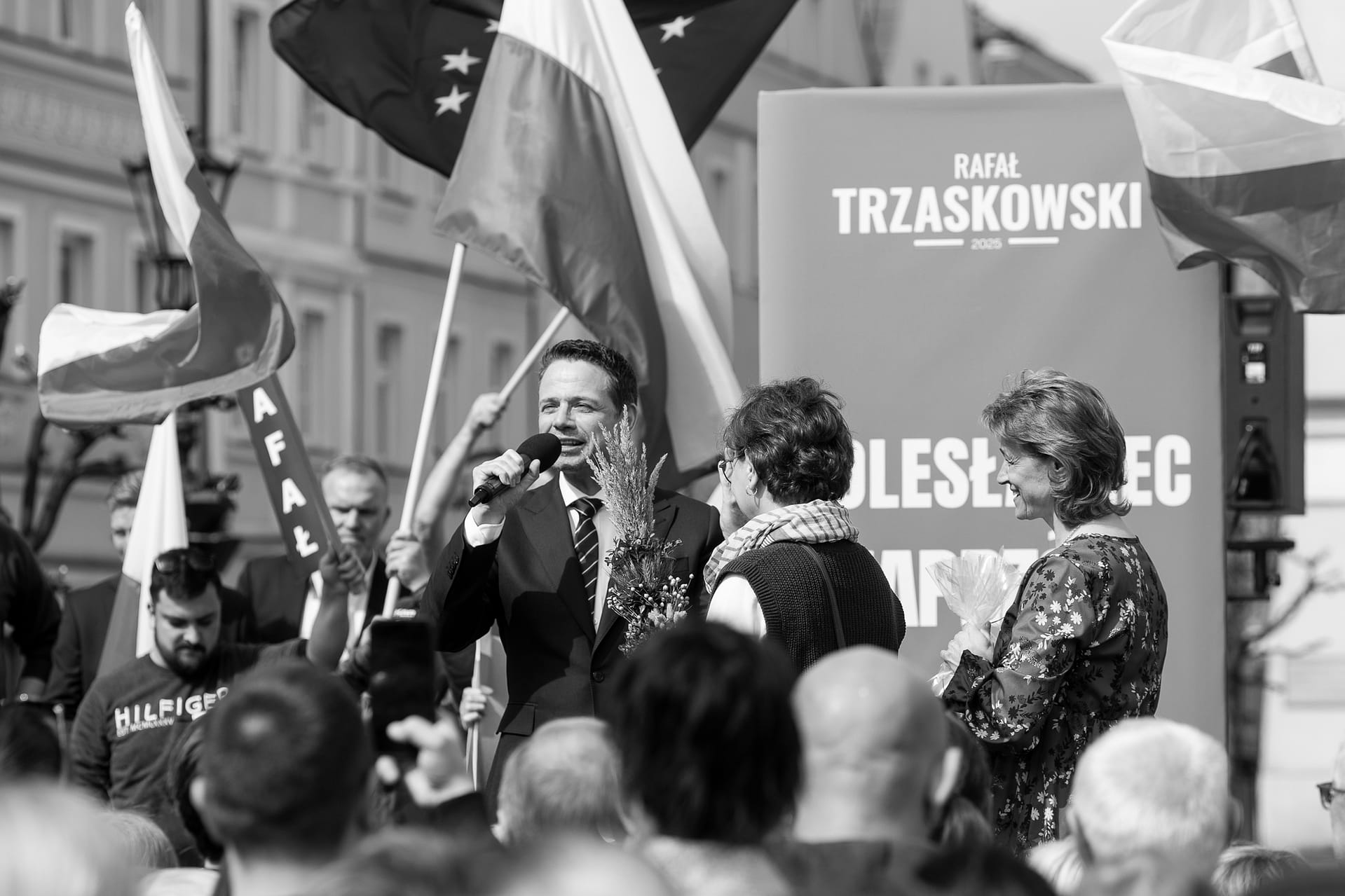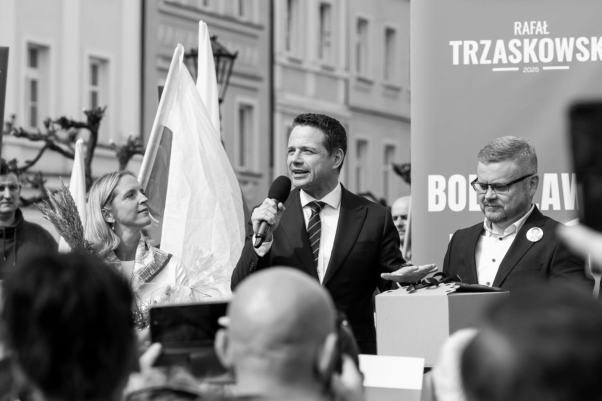 Fotografie z wiecu wyborczego Rafała Trzaskowskiego w Bolesławcu.