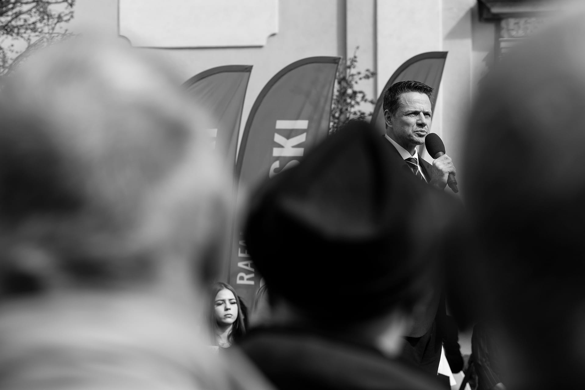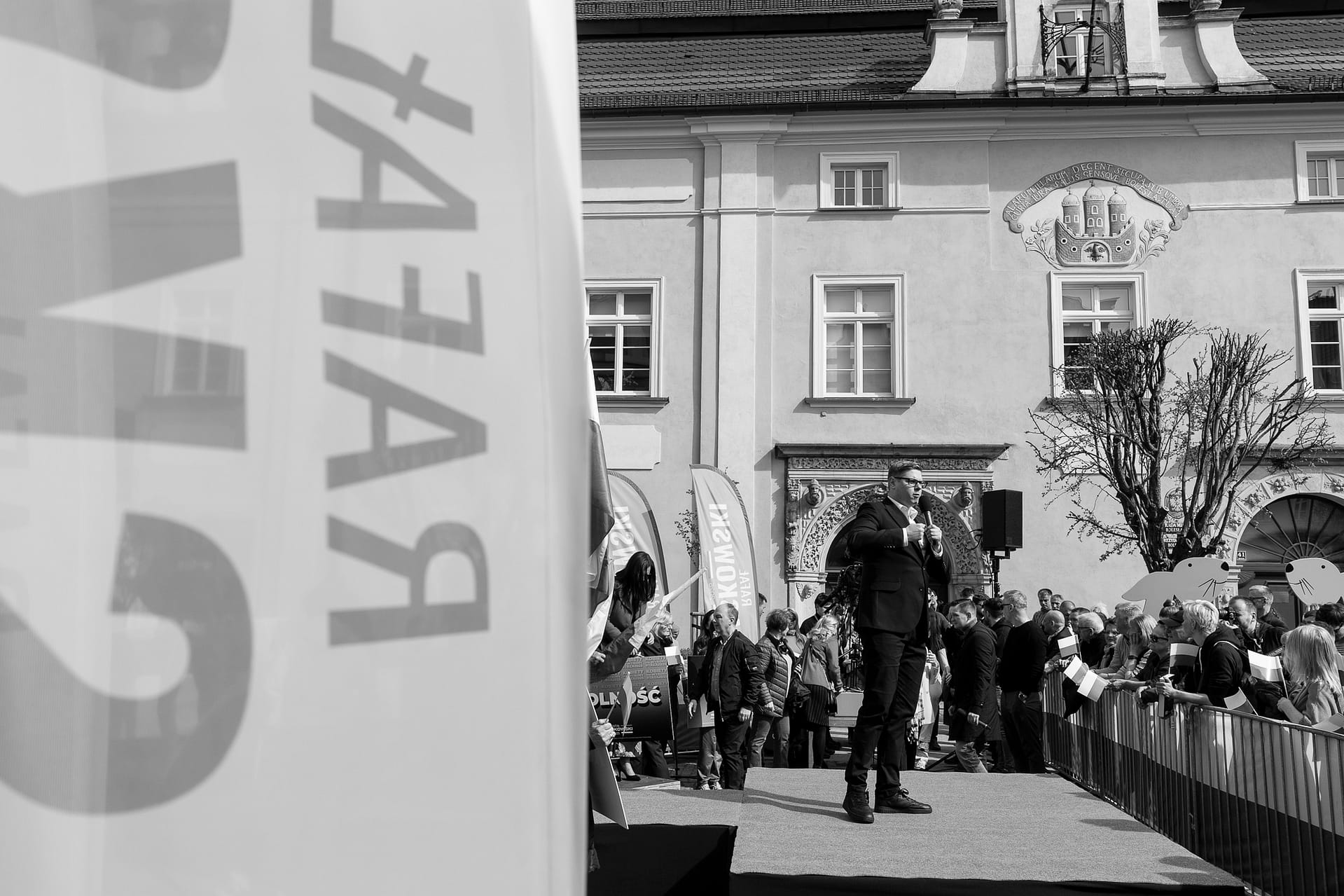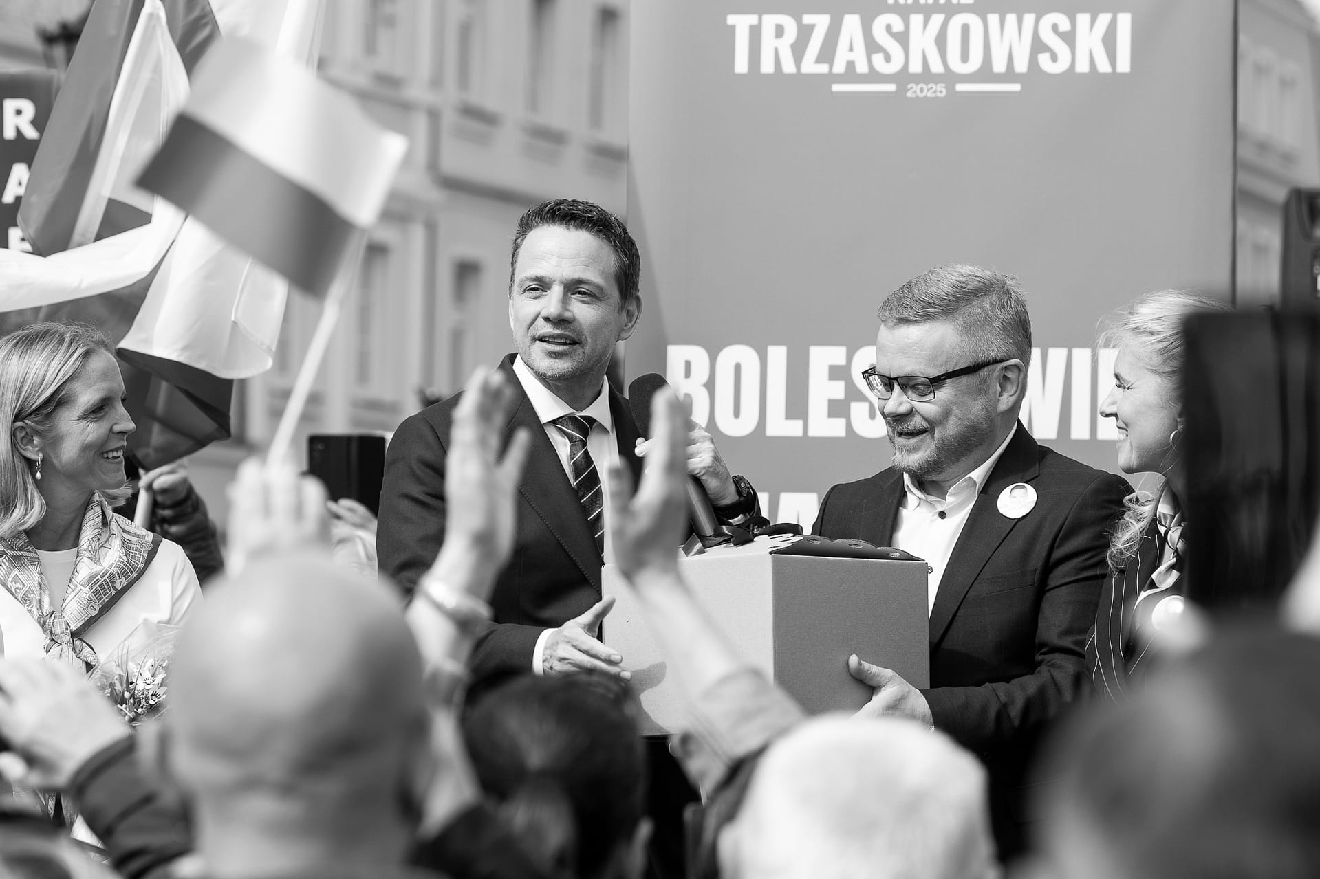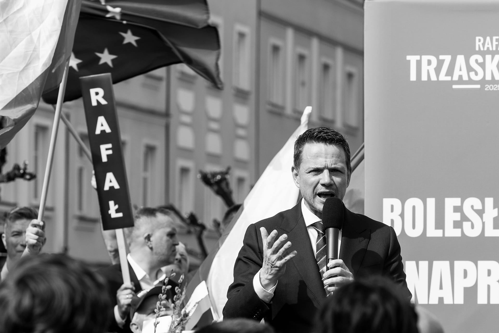 Fotografie z wiecu wyborczego Rafała Trzaskowskiego w Bolesławcu.
