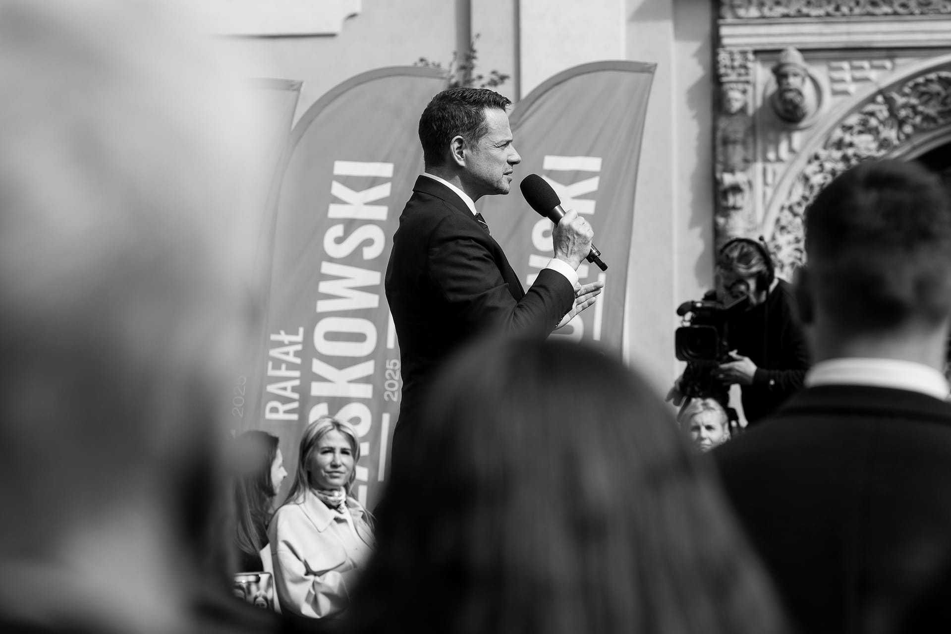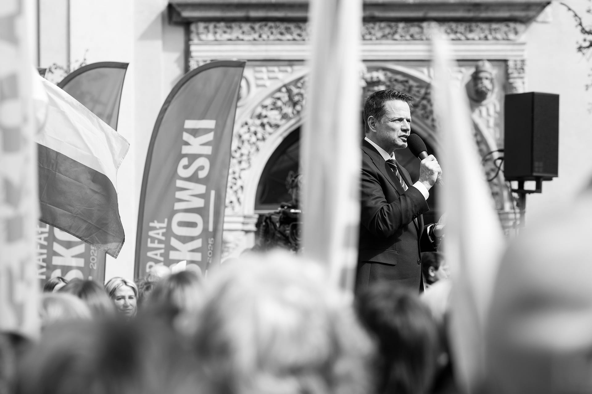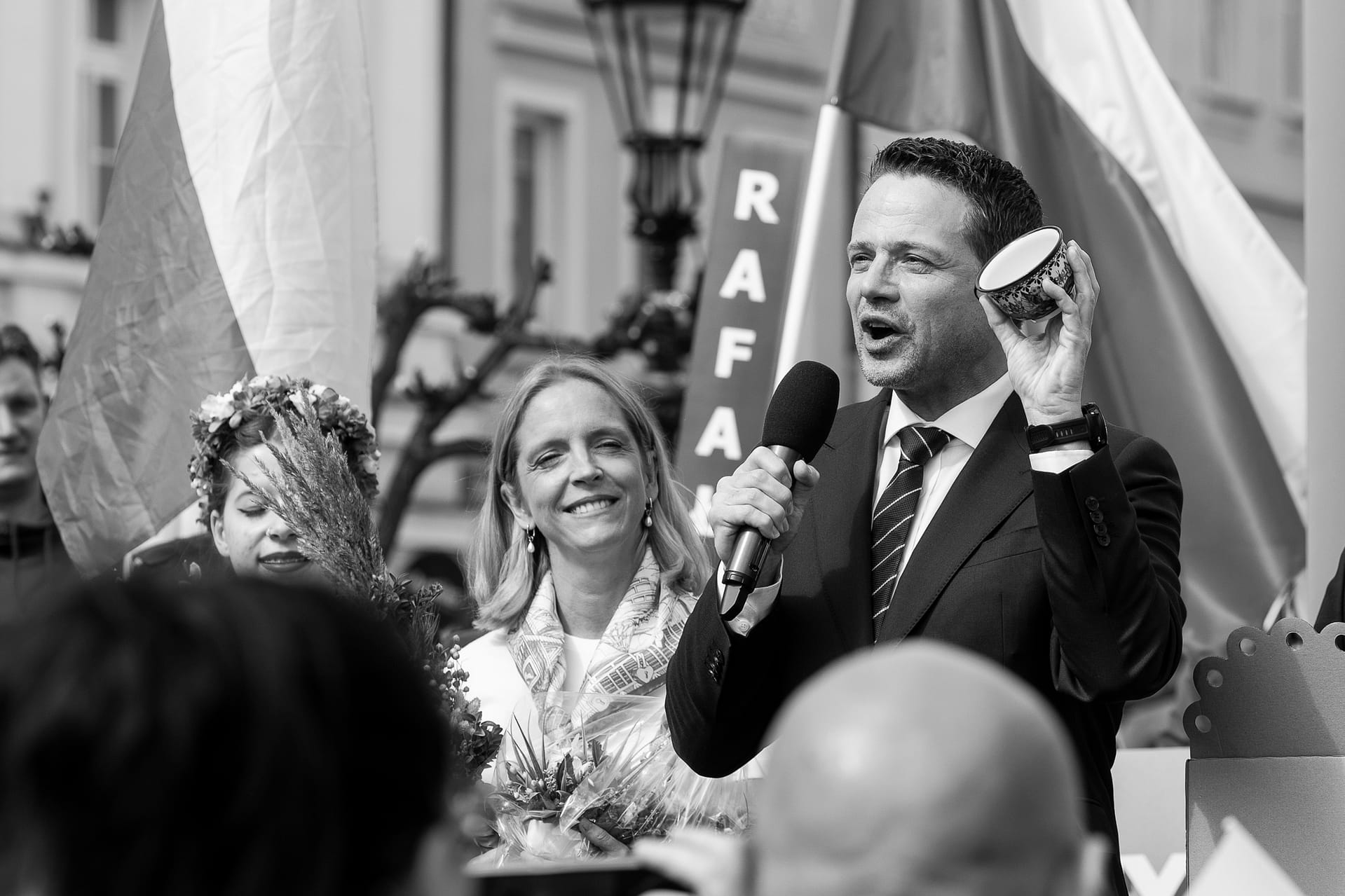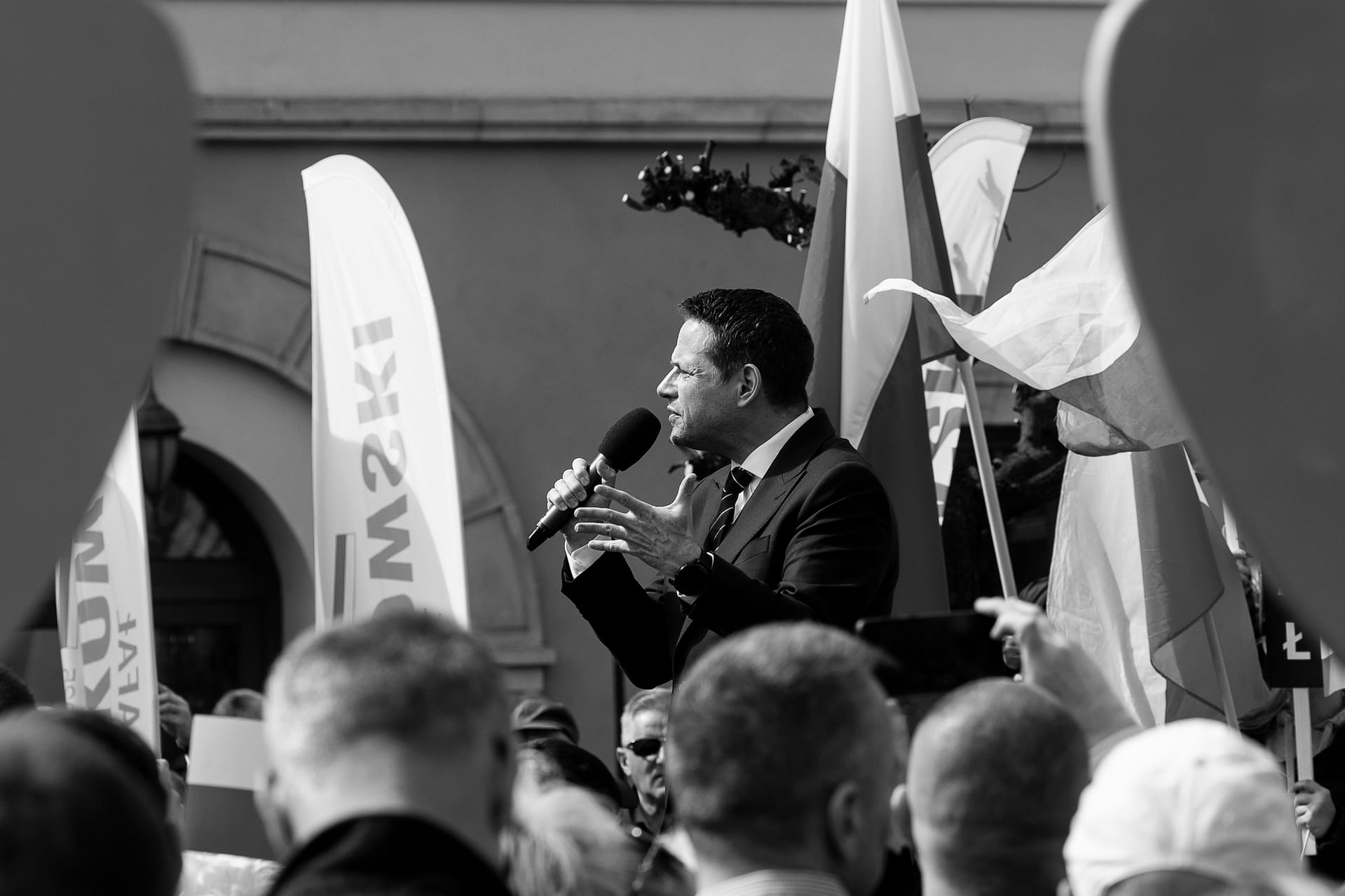 Fotografie z wiecu wyborczego Rafała Trzaskowskiego w Bolesławcu.
